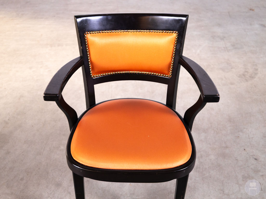Het stevige houten onderstel zorgt voor stabiliteit en maakt de stoel geschikt voor intensief horecagebruik. Perfect voor wie zoekt naar klassieke horecastoelen, restaurant stoelen met armleuning of horeca meubilair met luxe uitstraling. De stoel heeft op het hout gebruikssporen.