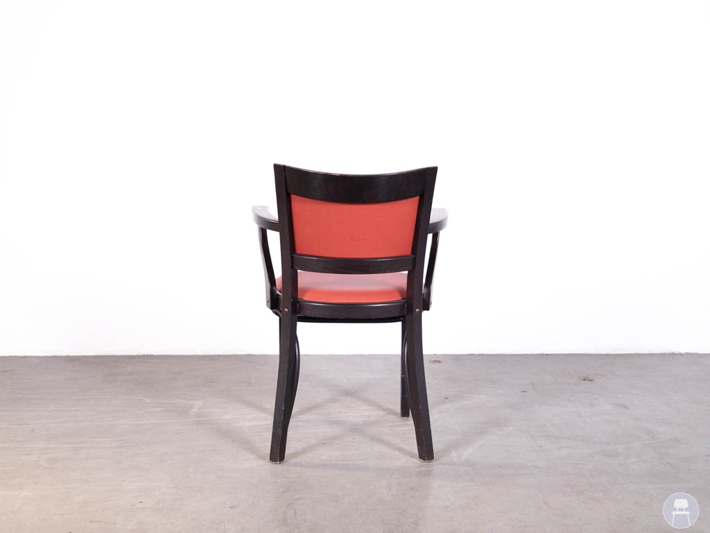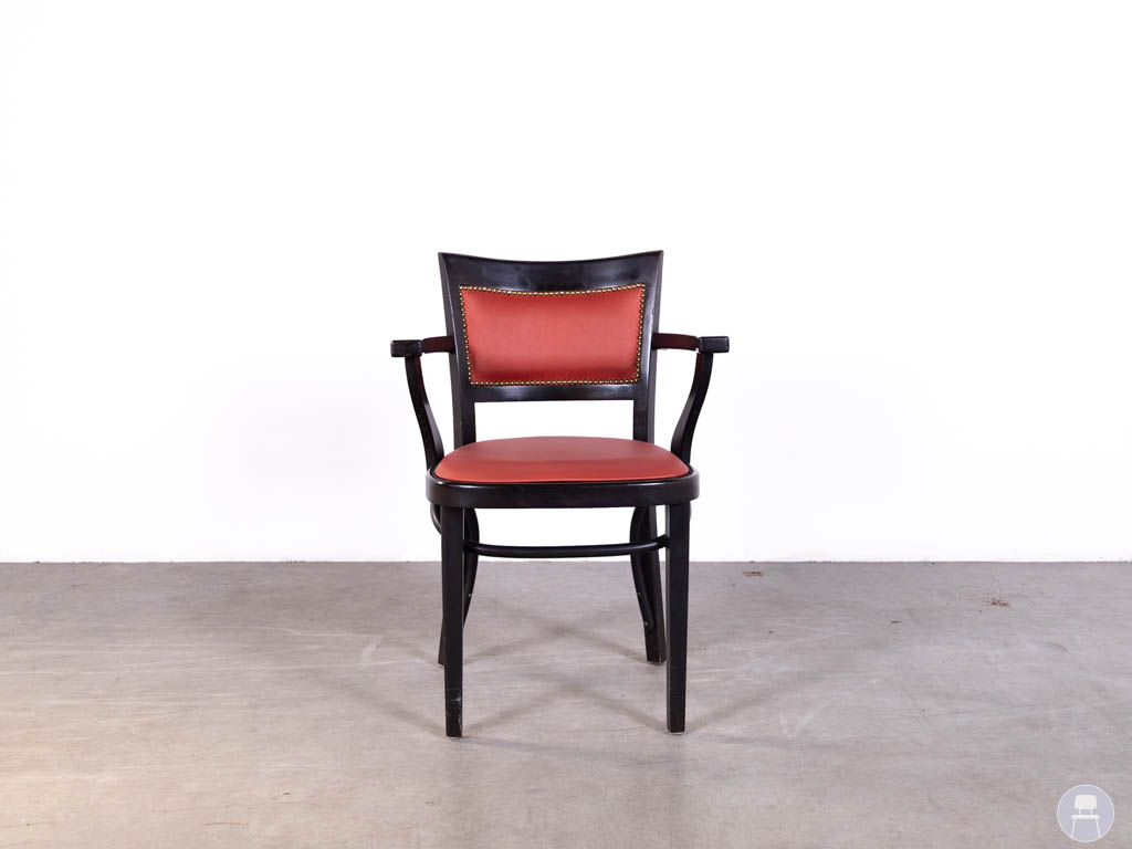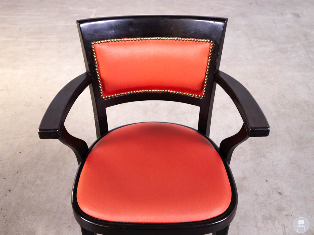 Horecastoel Maris rood Hutten heeft een klassieke en representatieve uitstraling die goed past in restaurants, cafés en andere sfeervolle horecagelegenheden. Het donkere houten frame vormt een mooi contrast met de rode bekleding van de zitting en rugleuning, waardoor de stoel direct warmte en karakter toevoegt aan het interieur. De siernagels in de rug geven dit model extra detail en versterken de verzorgde, traditionele look.