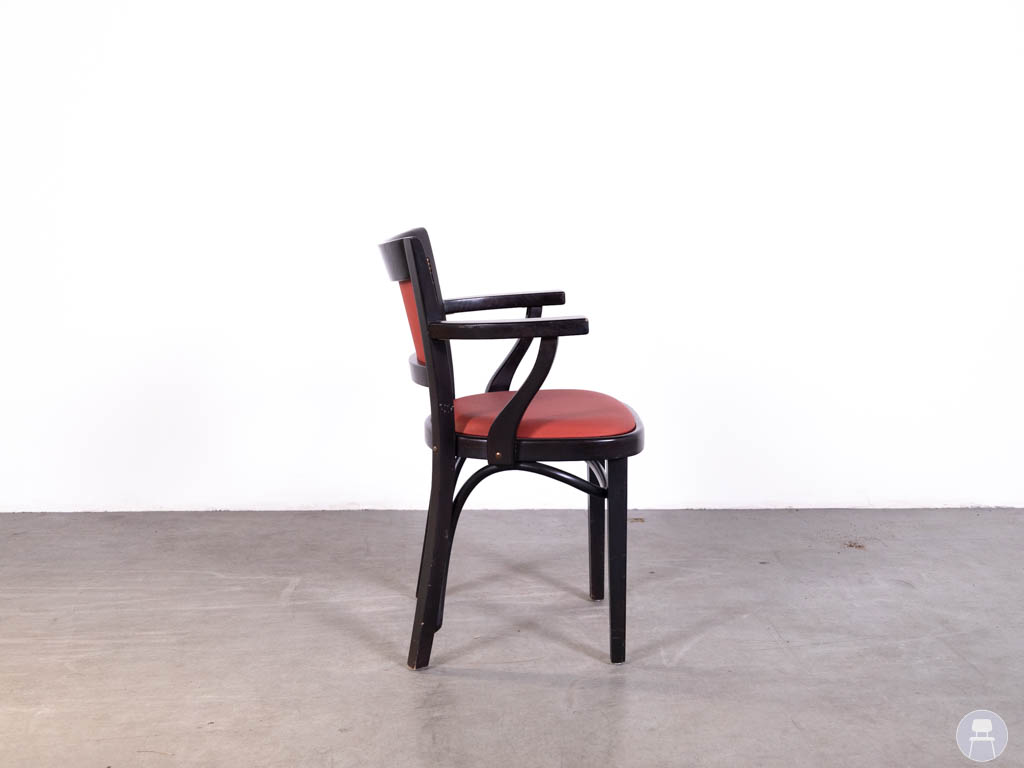 Dankzij de armleuningen en de gestoffeerde zitting biedt deze horecastoel prettig zitcomfort voor gasten. De gebogen lijnen in het frame zorgen daarnaast voor een elegante afwerking. Daarmee is deze stoel niet alleen functioneel in gebruik, maar ook een stijlvolle toevoeging aan een horecazaak die kiest voor een warme en gastvrije inrichting.