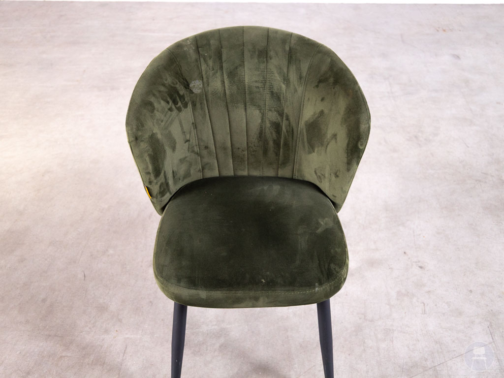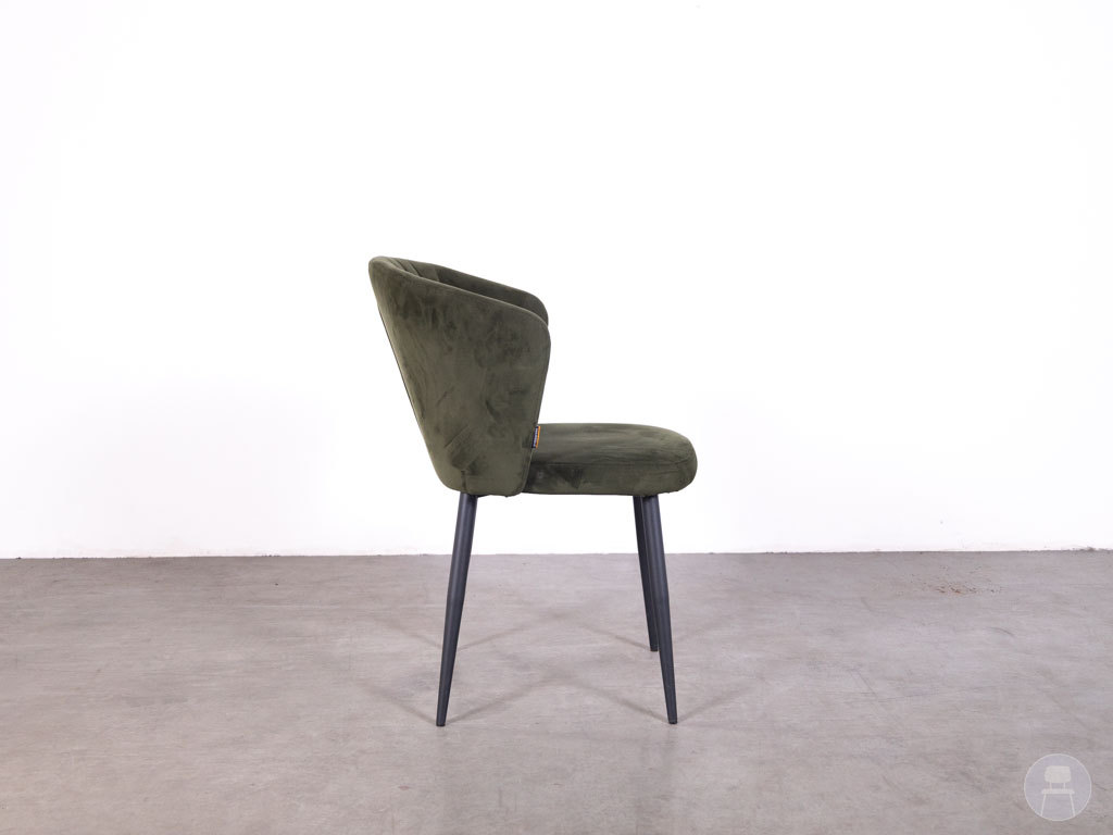 Horecastoel Micheal velvet groen is een luxe en comfortabele horecastoel met een elegante uitstraling. Deze stoel is uitgevoerd met een stevig metalen onderstel in zwart en een zachte velvet bekleding in een diepe groene kleur.