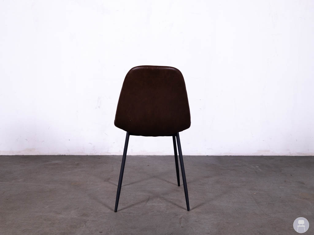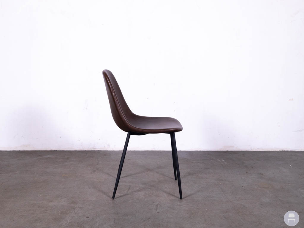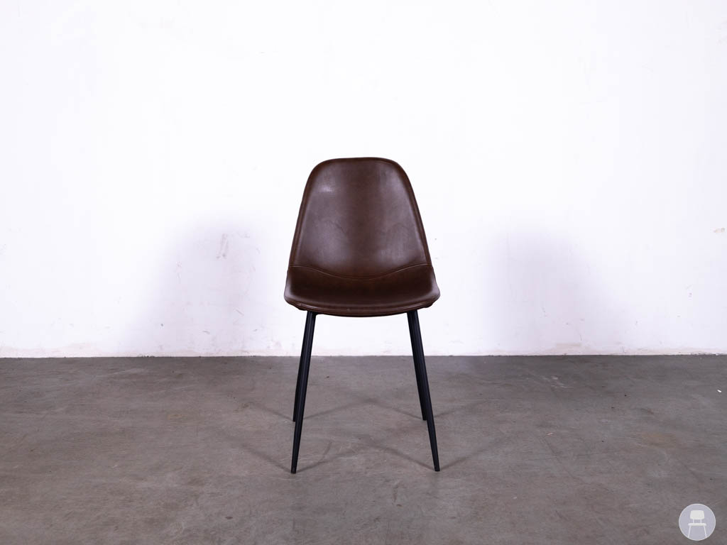 De zitting en rugleuning zijn uitgevoerd in bruin kunstleer, wat zorgt voor een warme en luxe look. Dit materiaal is bovendien onderhoudsvriendelijk en slijtvast, waardoor de stoel zeer geschikt is voor intensief gebruik in de horeca. De ergonomische vorm van de zitting zorgt ervoor dat gasten comfortabel kunnen zitten tijdens een diner, lunch of borrel. Het stevige stalen frame in zwarte kleur geeft de horecastoel een moderne en industriële uitstraling. Tegelijkertijd zorgt dit sterke onderstel voor stabiliteit en duurzaamheid, wat belangrijk is bij horecameubilair dat dagelijks gebruikt wordt. Door het tijdloze ontwerp is deze restaurantstoel eenvoudig te combineren met verschillende soorten horecatafels, zoals houten tafels, industriële tafels of moderne horeca-inrichting.