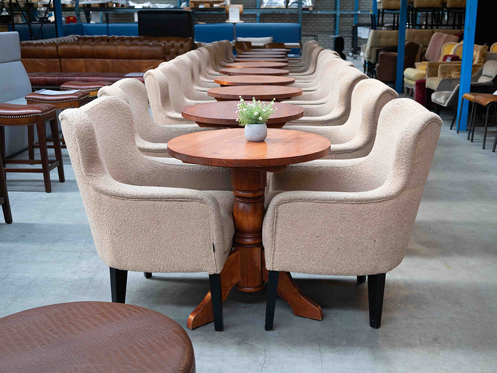 Horecastoel Teddy beige combineert stijl en comfort in één ontwerp. De stoel is van het merk Joelle Project Trading. De zachte teddybekleding geeft de stoel een warme en uitnodigende uitstraling, terwijl het stevige houten frame zorgt voor stabiliteit en duurzaamheid. Met een eigentijds design en neutrale kleur past deze stoel moeiteloos in diverse interieurs, van moderne cafés tot gezellige restaurants. Let op: door de lichte stof zijn er wat gebruikssporen zichtbaar, zoals te zien op de foto. Toch blijft deze horecastoel een comfortabele en stijlvolle keuze voor elke horecagelegenheid, ideaal voor langdurig gebruik.