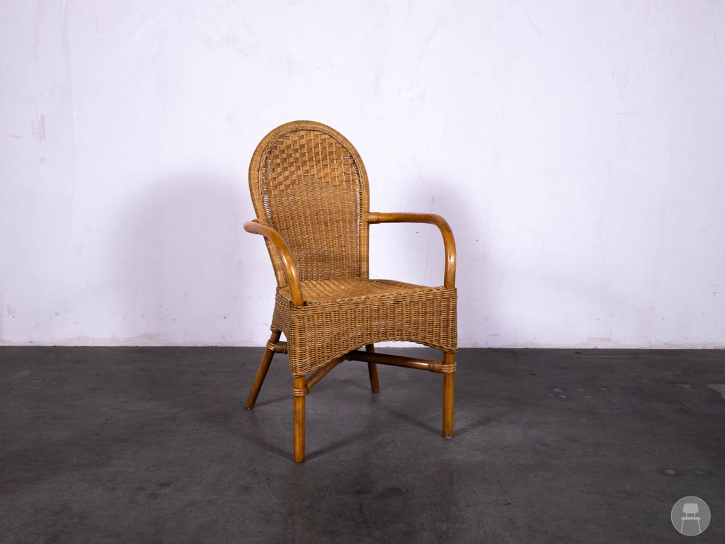 Naast het fraaie design biedt deze stoel ook comfort dankzij het zachte, lichtgrijze zitvlak en de prettige armleuningen. De combinatie van natuurlijke materialen en retro charme zorgt ervoor dat de Webbing Moreno Evert horecastoel niet alleen functioneel is, maar ook een echte sfeerbepaler. Ideaal voor horecazaken die op zoek zijn naar karakter, comfort en uitstraling.
