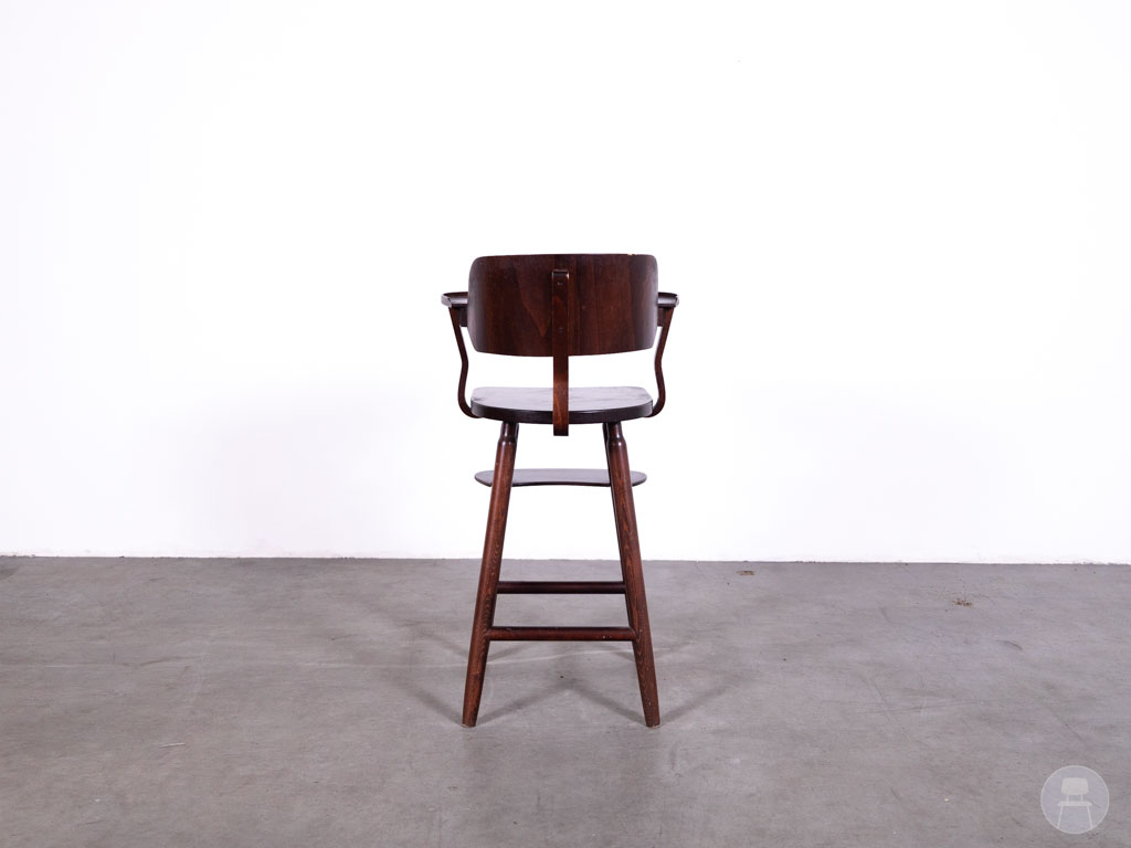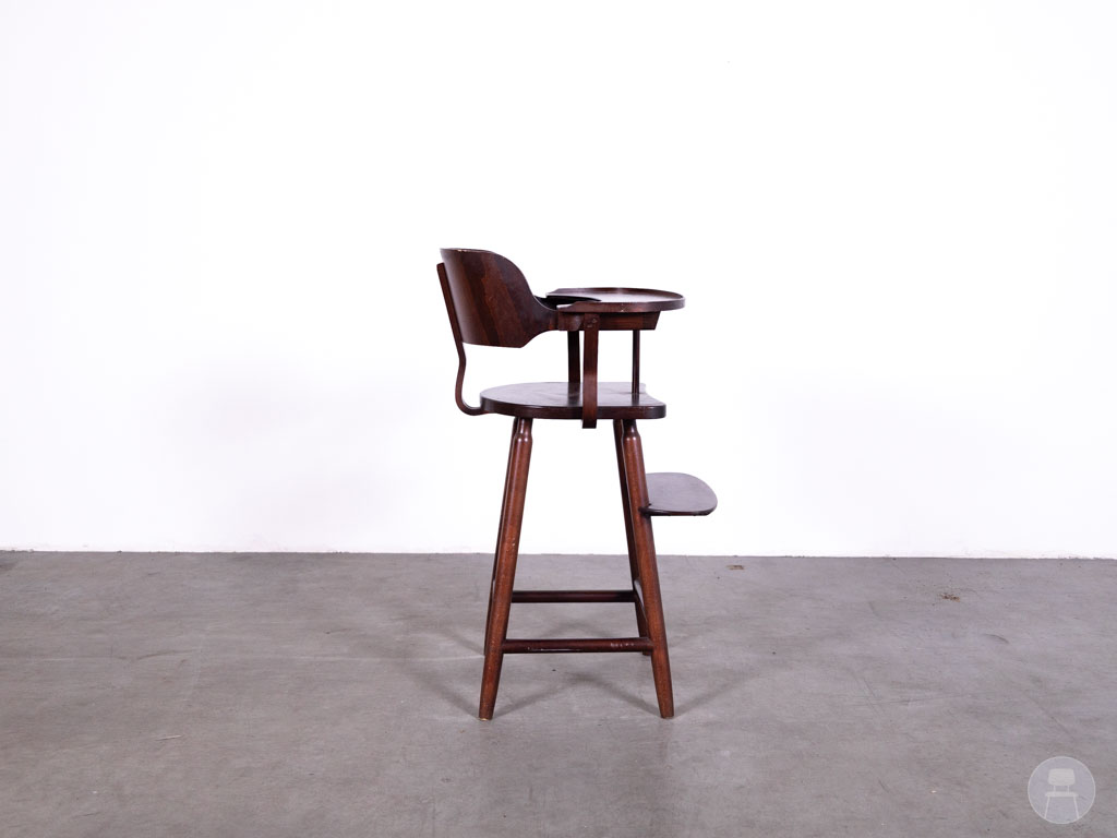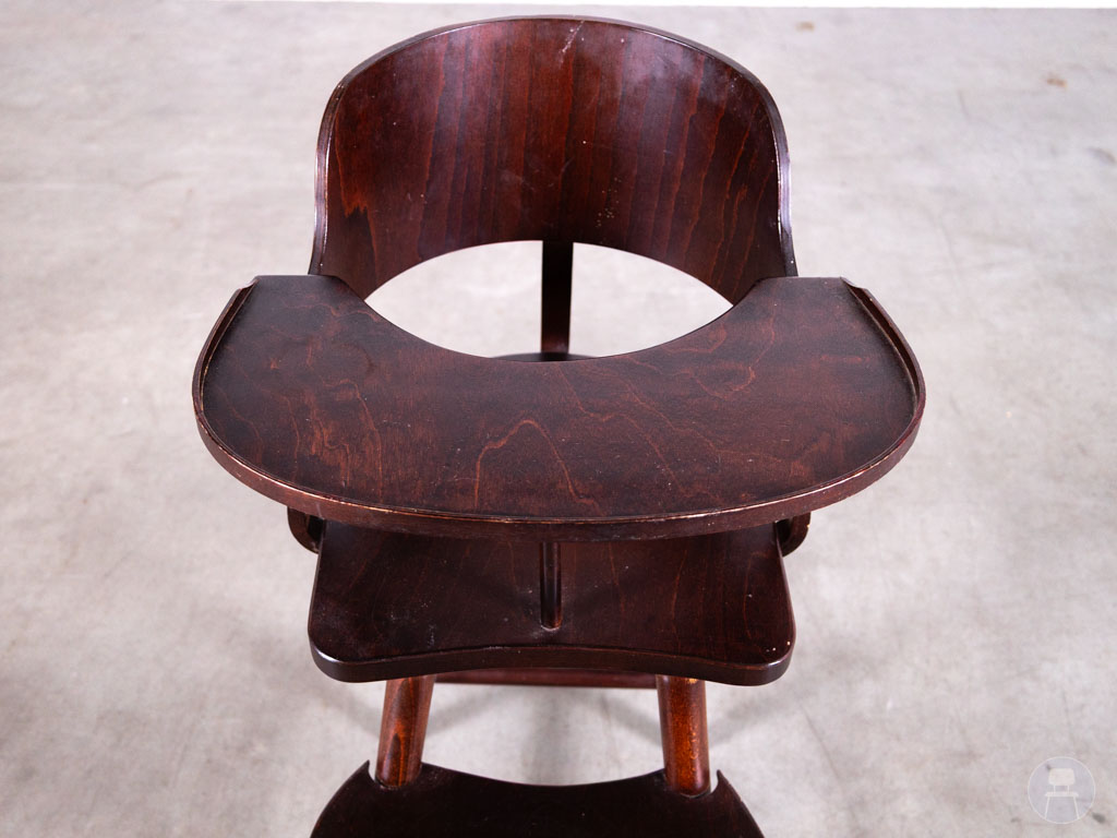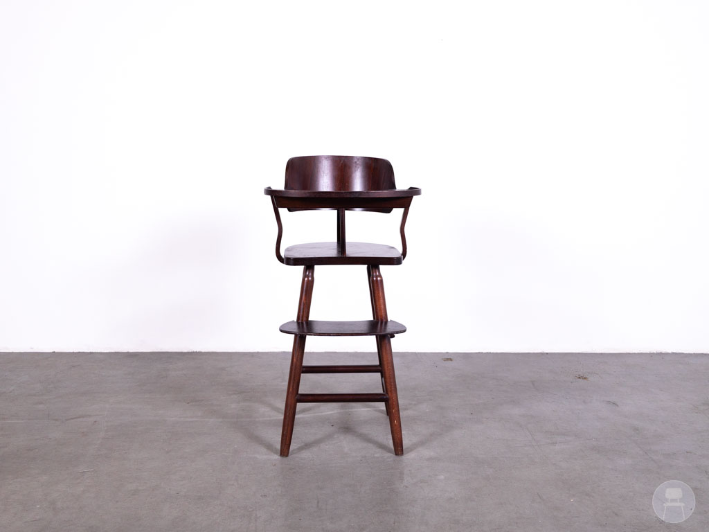 Deze kinderstoel verkeert in goede gebruikte staat met slechts lichte gebruikssporen die het karakter van het meubelstuk onderstrepen. De stevige constructie blijft volledig intact, waardoor jarenlang betrouwbaar gebruik gegarandeerd is.