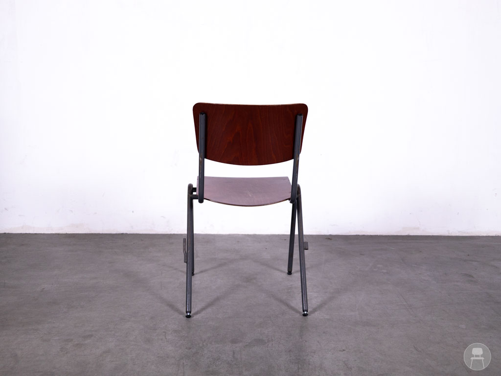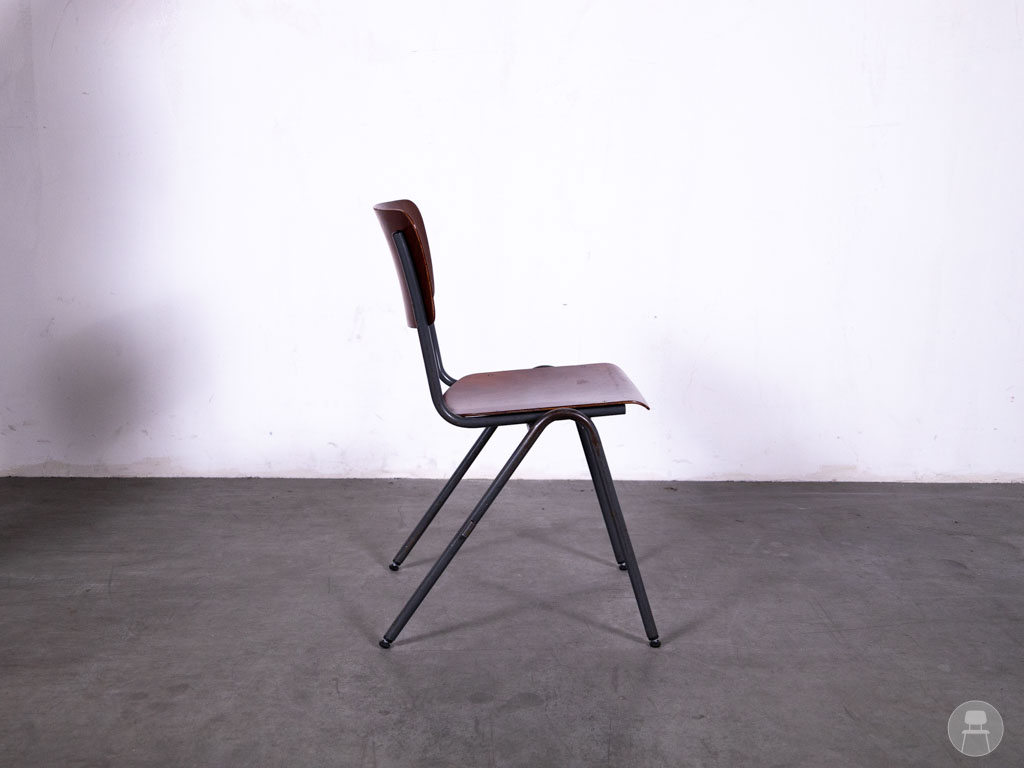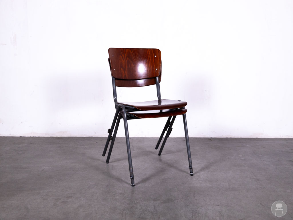 Schoolstoel Koning za is een stoere, functionele stoel met een industriële uitstraling die perfect past in de moderne horeca. Het zwarte stalen frame in combinatie met de donkerbruine houten zitting en rugleuning geeft deze stoel een retro vibe die direct sfeer toevoegt aan je interieur. Deze stapelbare stoel is niet alleen praktisch, maar ook verrassend comfortabel en ideaal voor drukbezochte zaken waar flexibiliteit belangrijk is.