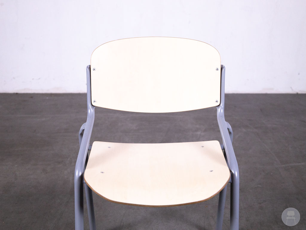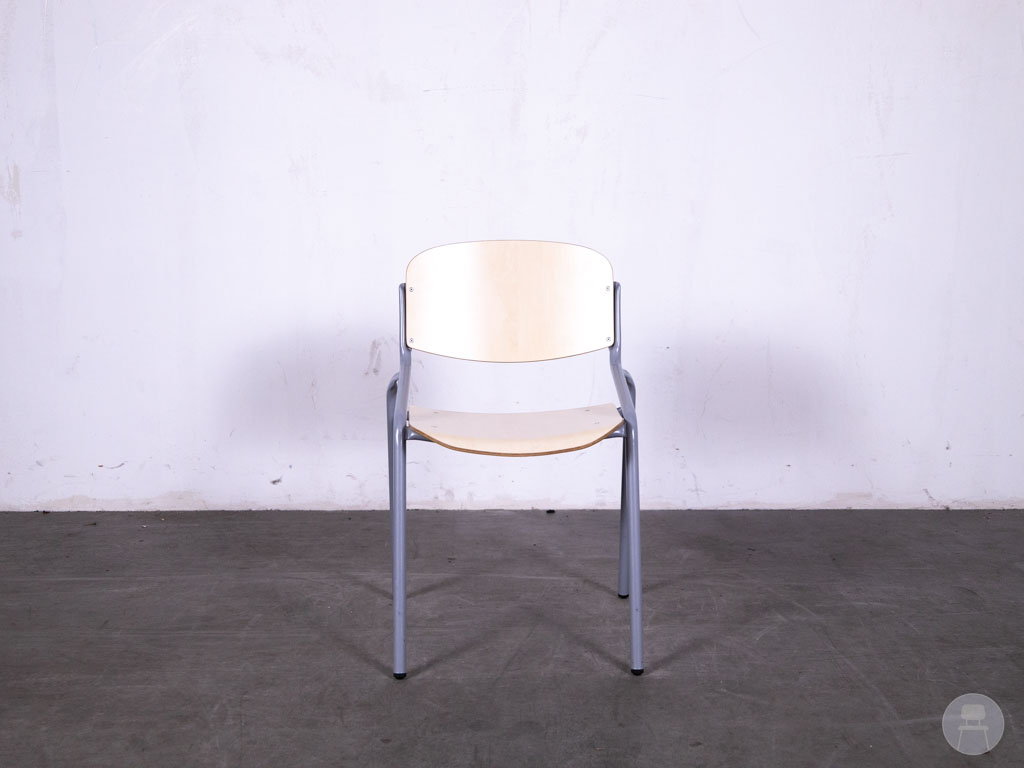 Schoolstoel Roel naturel is een minimalistische en functionele stoel met een frisse, tijdloze uitstraling. Dankzij het lichte houten zitvlak en rugleuning in naturel kleur straalt deze stoel rust en eenvoud uit — perfect voor ruimtes waar concentratie en comfort samenkomen. Het subtiel gebogen metalen frame in lichtgrijs biedt een stabiele basis en zorgt voor een moderne twist, waardoor de Roel niet alleen geschikt is voor scholen en vergaderruimtes, maar ook verrassend goed tot zijn recht komt in creatieve horeca-interieurs of flexwerkplekken.