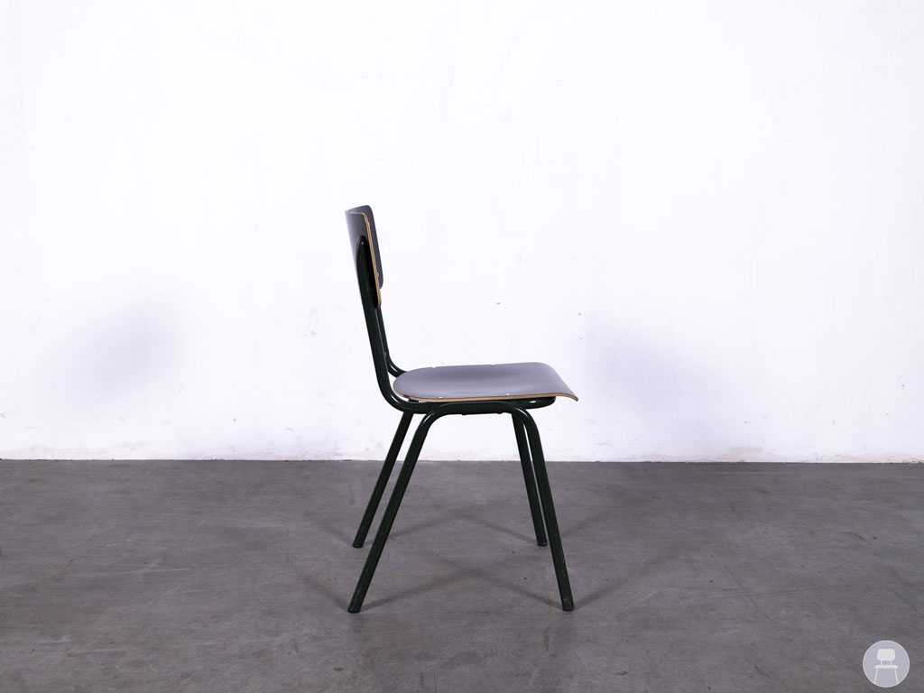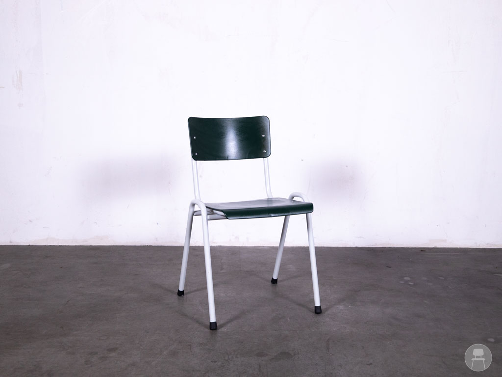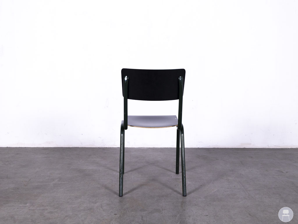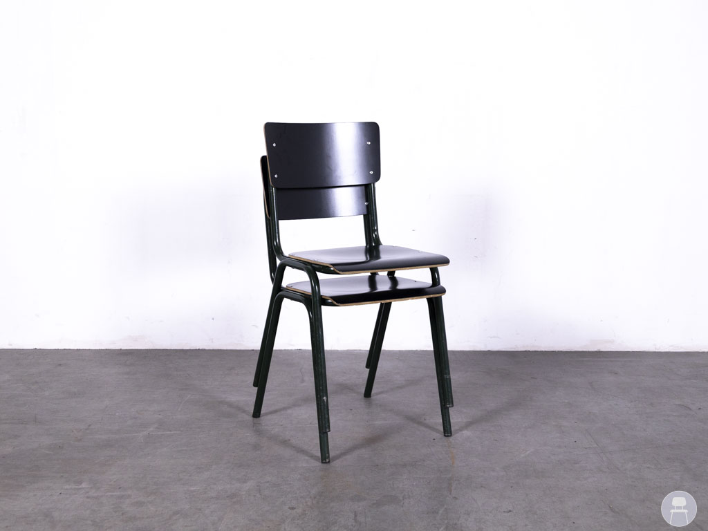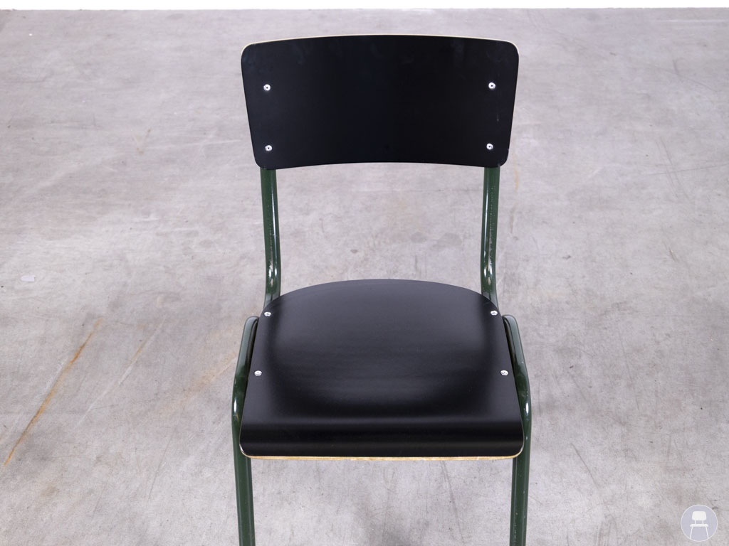 Schoolstoel Truus zwart-groen is een robuuste, praktische en karaktervolle stoel met een herkenbare vintage uitstraling. Het donkergroene metalen frame wordt gecombineerd met een zwart houten zitting en rugleuning, bevestigd met zichtbare metalen schroeven. Perfect voor een industriële of retro inrichting, of als functionele zitplek in een creatieve werkruimte of kantine. De schoolstoel is stapelbaar, dus handig op te bergen of te verplaatsen. Ideaal voor scholen, horeca, evenementen of thuisgebruik.
