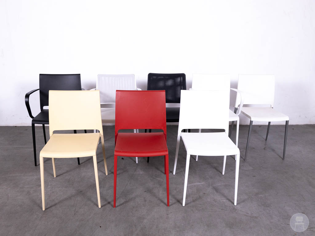 1 set 8 stuks Stapelstoel Nema mix Pedrali is een krachtige combinatie van Italiaans design en functioneel vakmanschap — ideaal voor horecazaken die stevigheid, stijl en flexibiliteit hoog in het vaandel hebben. Deze mix van stoelen, uitgevoerd in uiteenlopende kleuren zoals zwart, wit, rood, crème en meer, voegt direct een levendige en eigentijdse uitstraling toe aan elk interieur of terras.