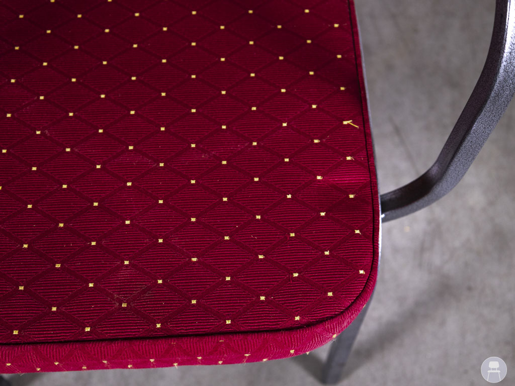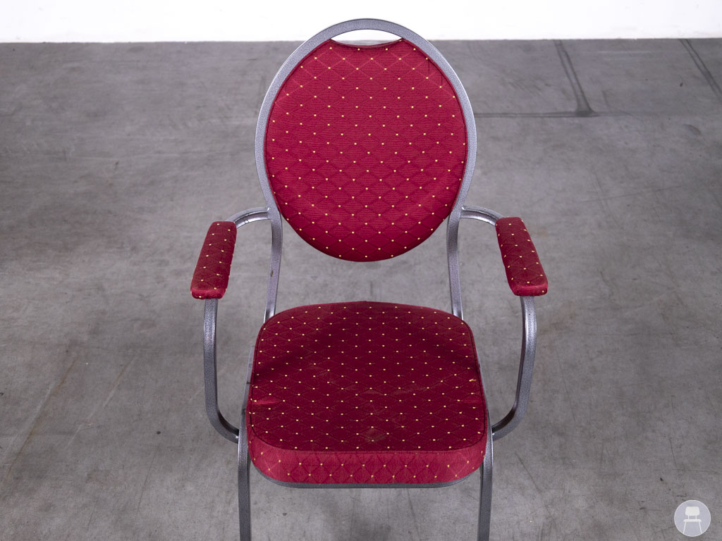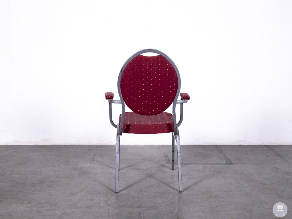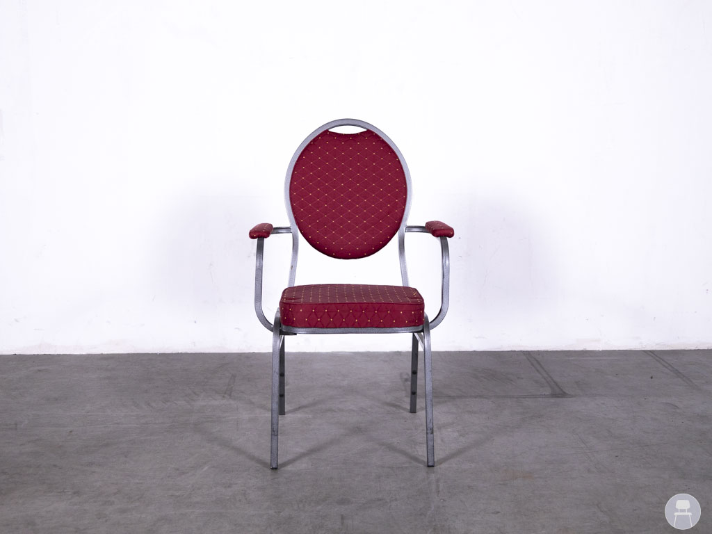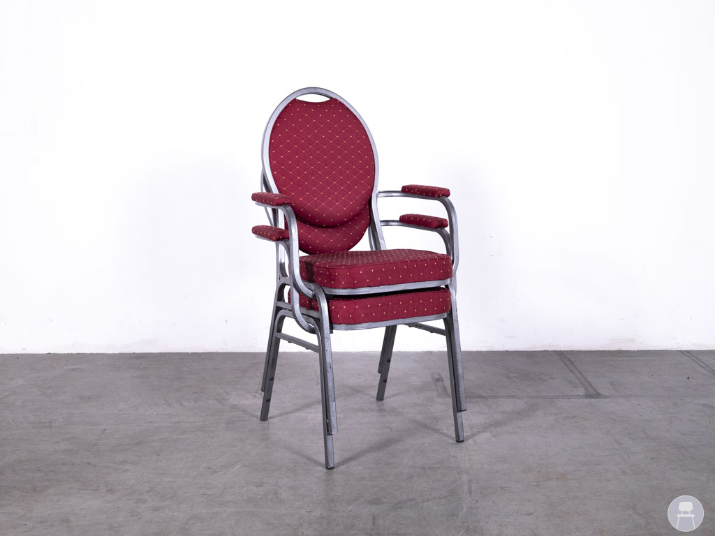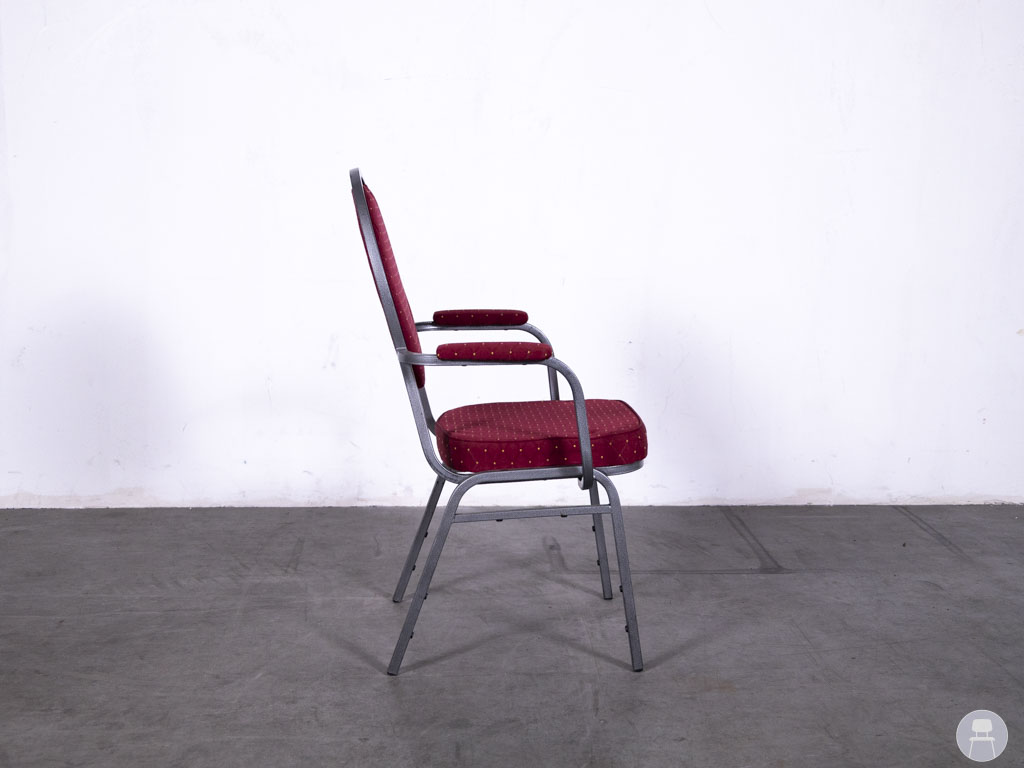 Stackchair Mirka ma rood is een functionele en comfortabele stapelstoel, perfect voor zalen, evenementen of wachtruimtes. De horecastoel heeft een robuust metalen frame en is bekleed met een warme rode stof met subtiel patroon. Dankzij de armleuningen en zachte zitting biedt hij extra comfort bij langer gebruik. De stoel is stapelbaar, wat hem zeer geschikt maakt voor flexibel gebruik en efficiënte opslag. De stoel heeft lichte gebruikssporen.