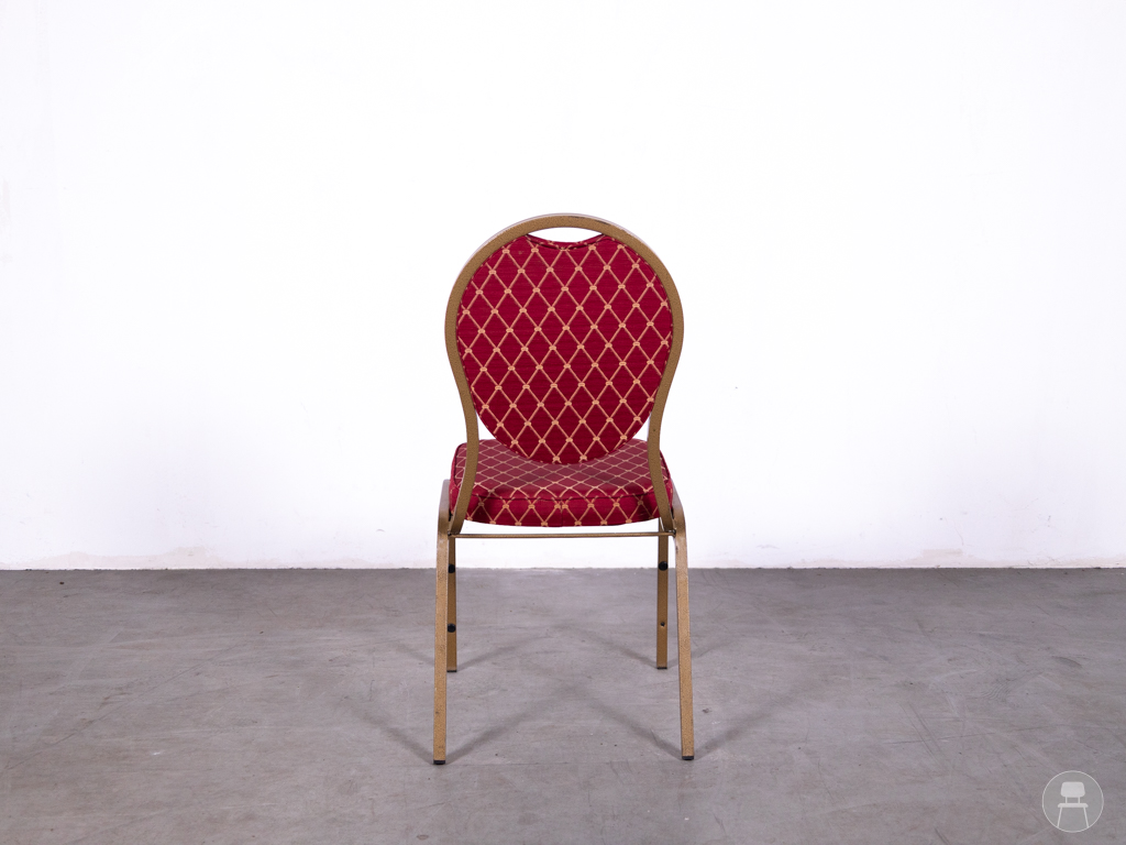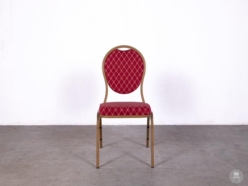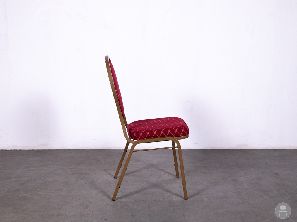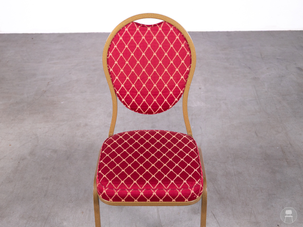 Stackchair Roos rood is een elegante en praktische stapelstoel, ideaal voor conferenties, evenementen of horecagebruik. De stoel heeft een comfortabele zitting en rugleuning, beide bekleed met een klassieke rode stof met een subtiel ruitpatroon. Het stevige goudkleurige metalen frame zorgt voor een stabiele constructie en maakt de stackchair stapelbaar, wat ruimtebesparing mogelijk maakt. Dankzij de tijdloze uitstraling en de duurzame materialen is deze stoel een uitstekende keuze voor intensief gebruik.
