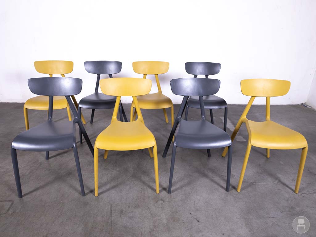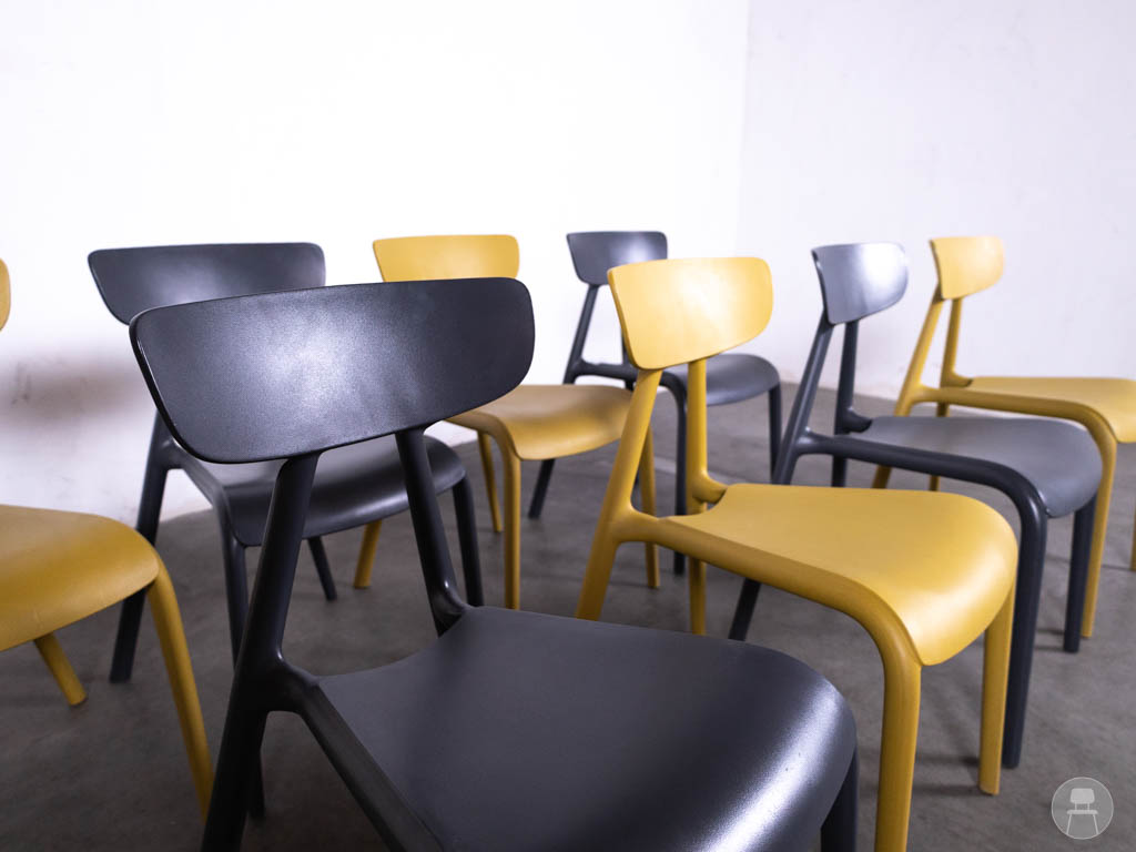 1 set 8 stuks Terrasstoel Wisse mix Woood in donkergrijs en mosterdgeel/bruin is een opvallende verschijning die direct kleur en karakter toevoegt aan elk horecaterras. De strakke lijnen en moderne vormgeving zorgen voor een frisse en eigentijdse uitstraling, terwijl de combinatie van kleuren het geheel een speels en uitnodigend effect geeft. Gasten voelen zich meteen welkom op deze comfortabele en stabiele stoelen, die bovendien lichtgewicht en gemakkelijk te verplaatsen zijn.