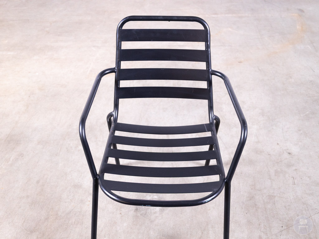 De stoel is volledig uitgevoerd in metaal, wat zorgt voor een stevige, duurzame constructie en een lange levensduur. Het open latten ontwerp van de zitting en rugleuning geeft de stoel een eigentijdse uitstraling en zorgt daarnaast voor extra ventilatie en comfort tijdens gebruik. Een groot pluspunt van de Terrasstoel Benito is dat hij stapelbaar is. Hierdoor bespaar je eenvoudig ruimte bij opslag en is de stoel ideaal voor horecazaken met een flexibel terras.