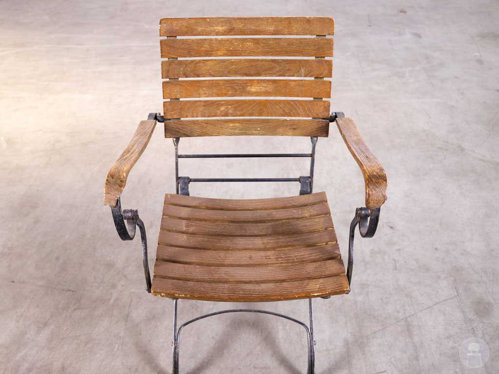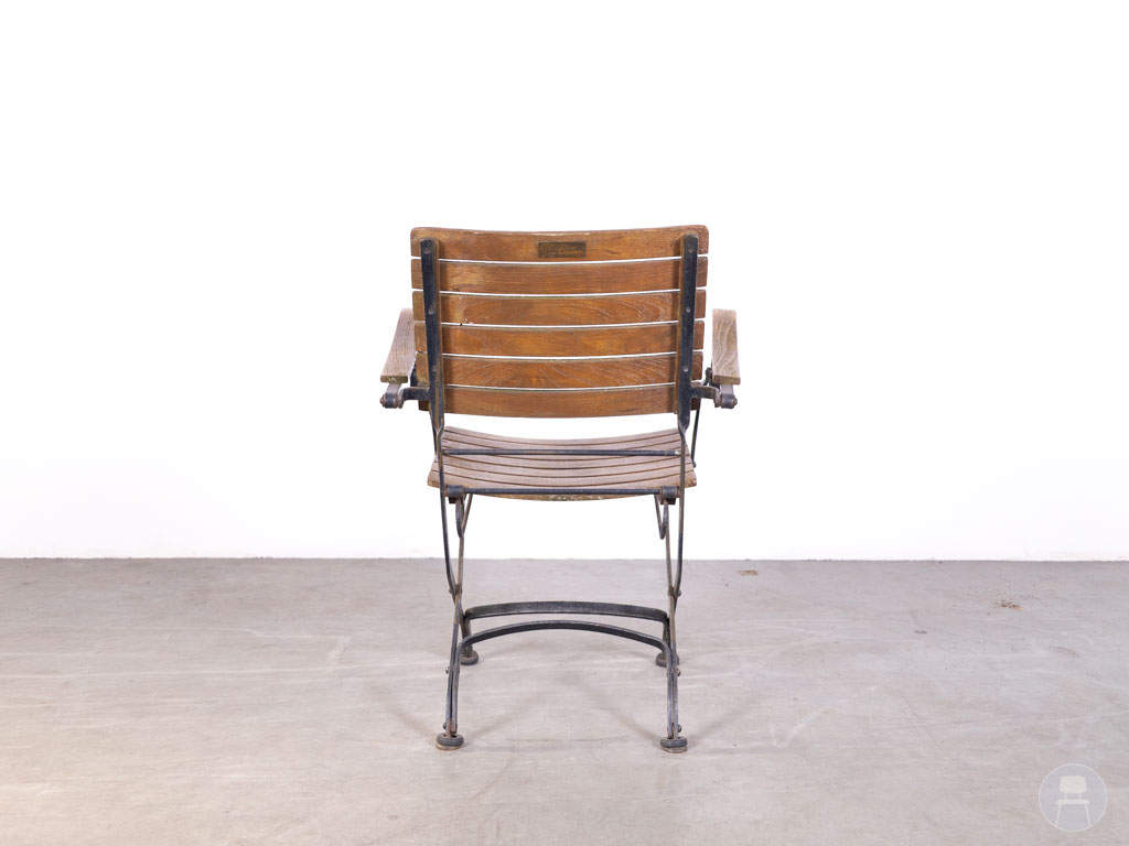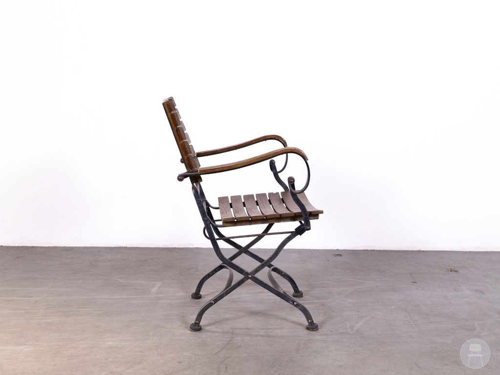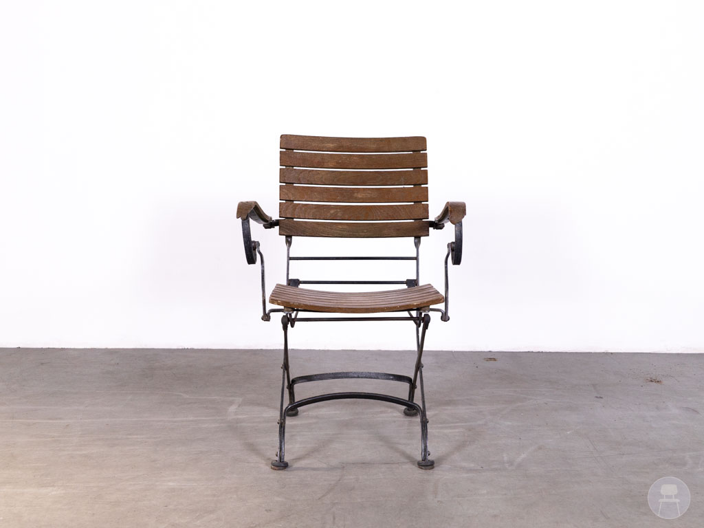 De stoel is uitgevoerd met een stevig metalen frame en een houten zitting en rugleuning in bruine kleur, wat zorgt voor een tijdloze en sfeervolle look. Dankzij het klapbare ontwerp is deze stoel praktisch in gebruik en eenvoudig op te bergen, wat perfect is voor flexibel terrasgebruik in de horeca.