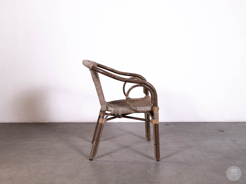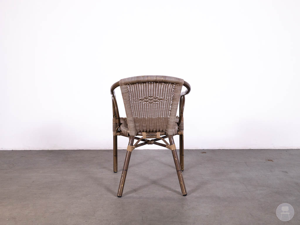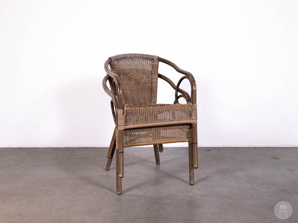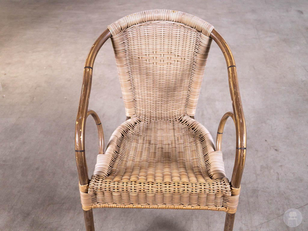 Let op: deze stoel bevat gebruikerssporen. De Panda lijn staat bekend om zijn duurzame en onderhoudsvriendelijke horecameubilair. Een uitstekende keuze voor wie zoekt naar een horeca terrasstoel, wicker stoel bruin of bistro stoel buiten met een tijdloze uitstraling.