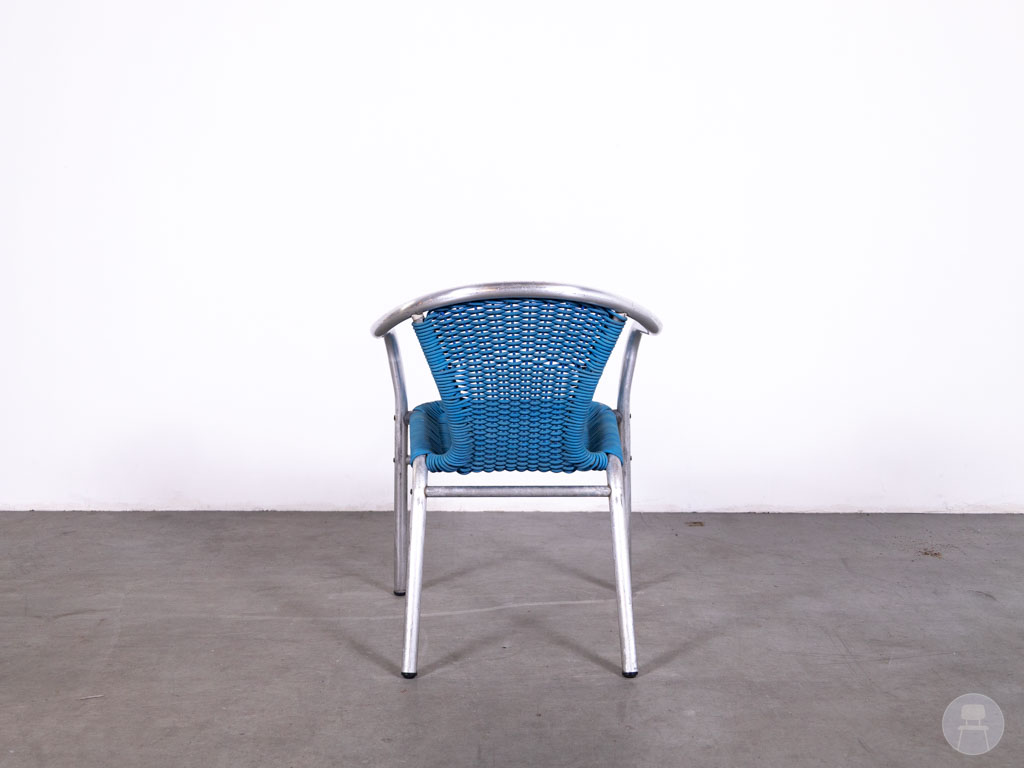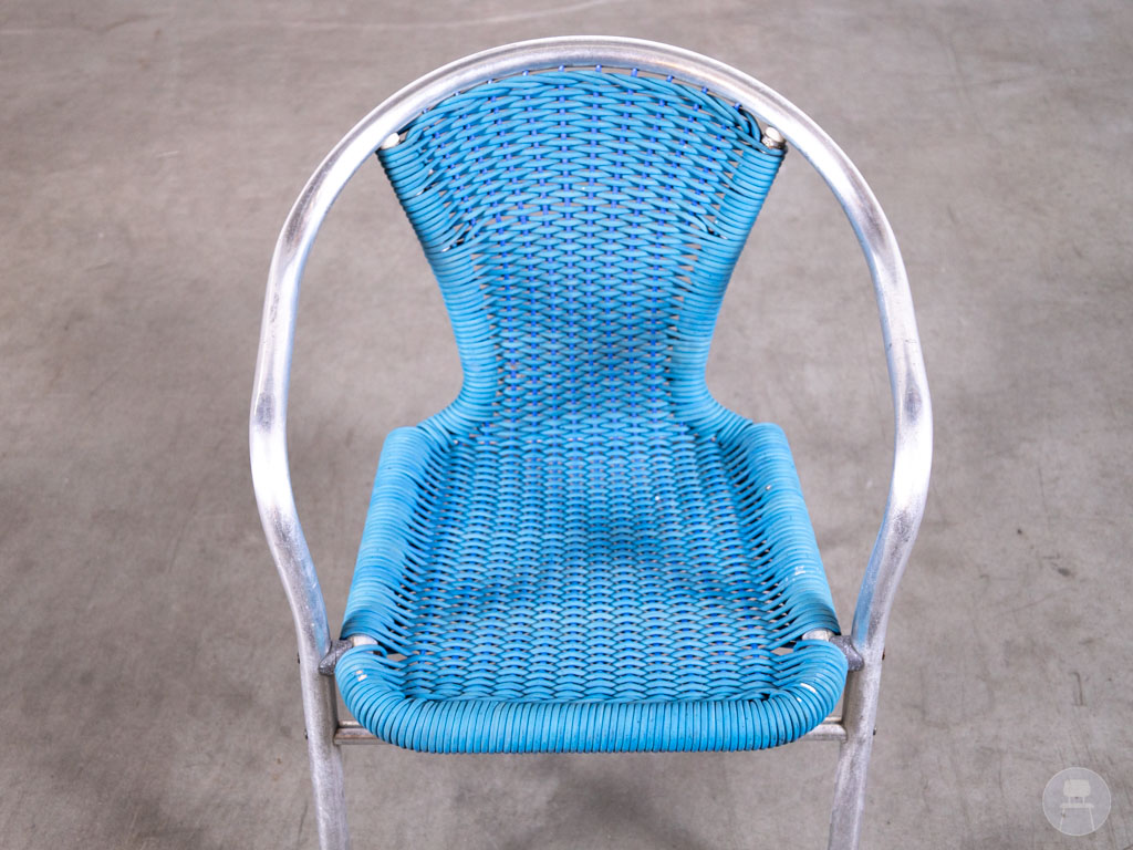 Deze terrasstoel is speciaal ontworpen met de behoeften van restaurants, cafés en hotels in gedachten. Het stapelbare design bespaart kostbare opslagruimte door tot wel 8 stoelen op elkaar te stapelen.  De ergonomisch gevormde zitting en rugleuning bieden optimaal zitcomfort voor uw gasten. Het hoogwaardige vlechtwerk in een frisse blauwe kleur voegt een speelse maar professionele touch toe aan uw terras of tuin. Het materiaal bestaat uit een aluminium frame met kunststof vlechtwerk in de kleur blauw. De stoel is stapelbaar en geschikt voor buitengebruik met minimaal onderhoud vereist.