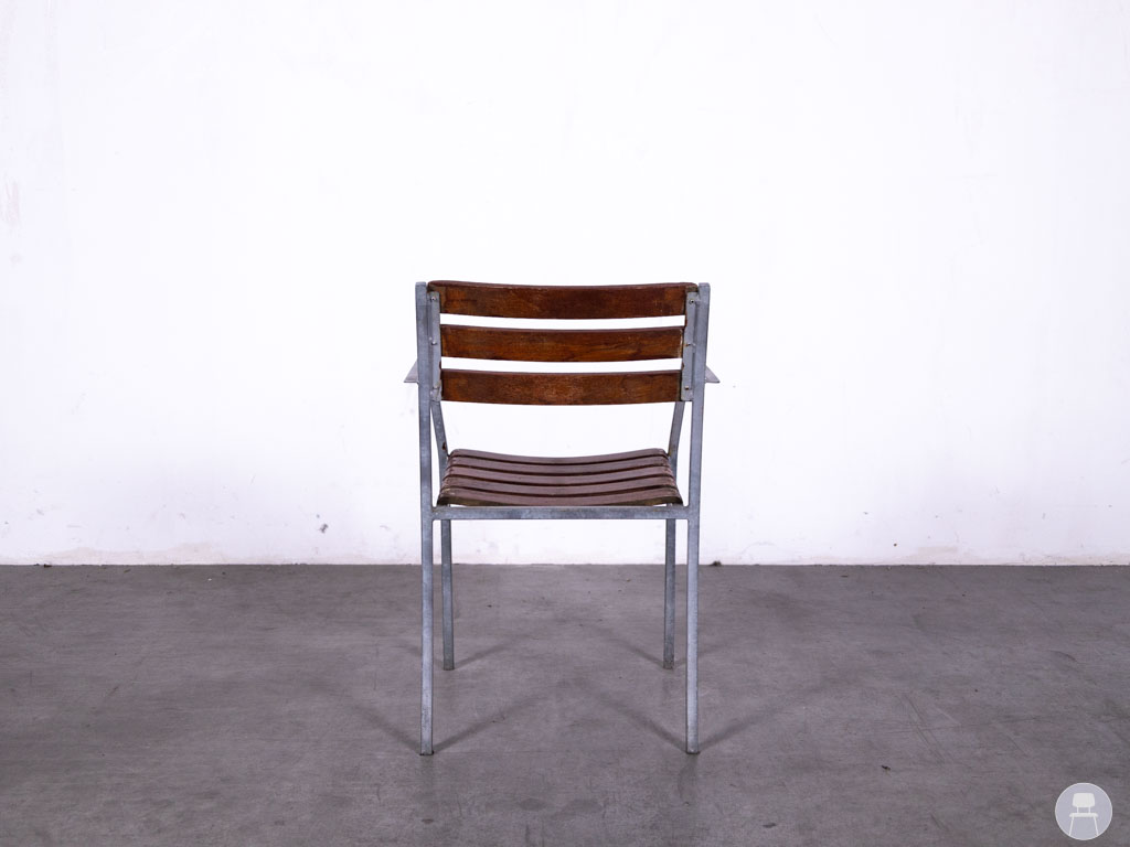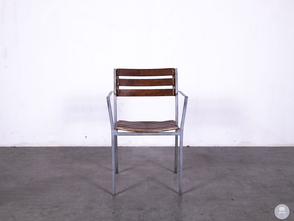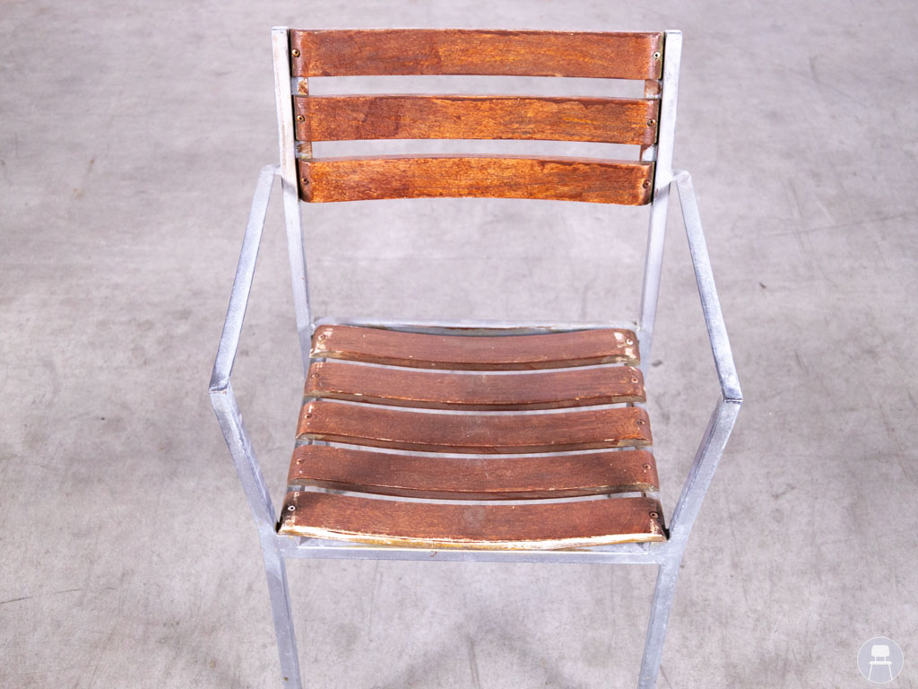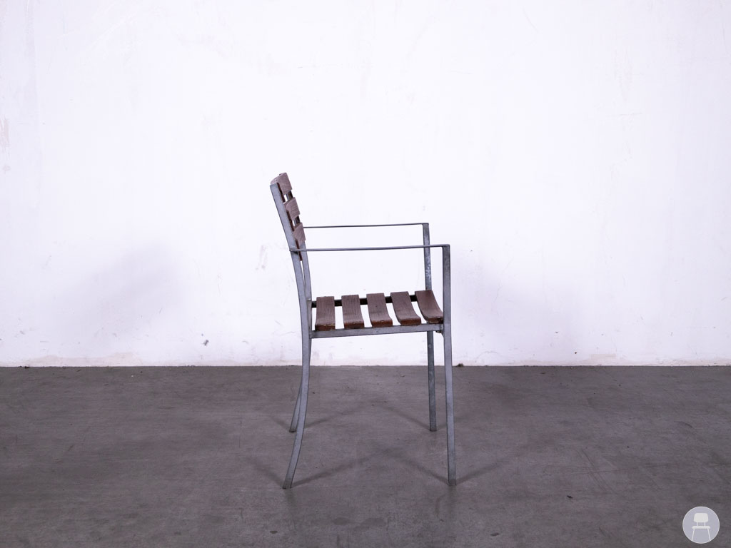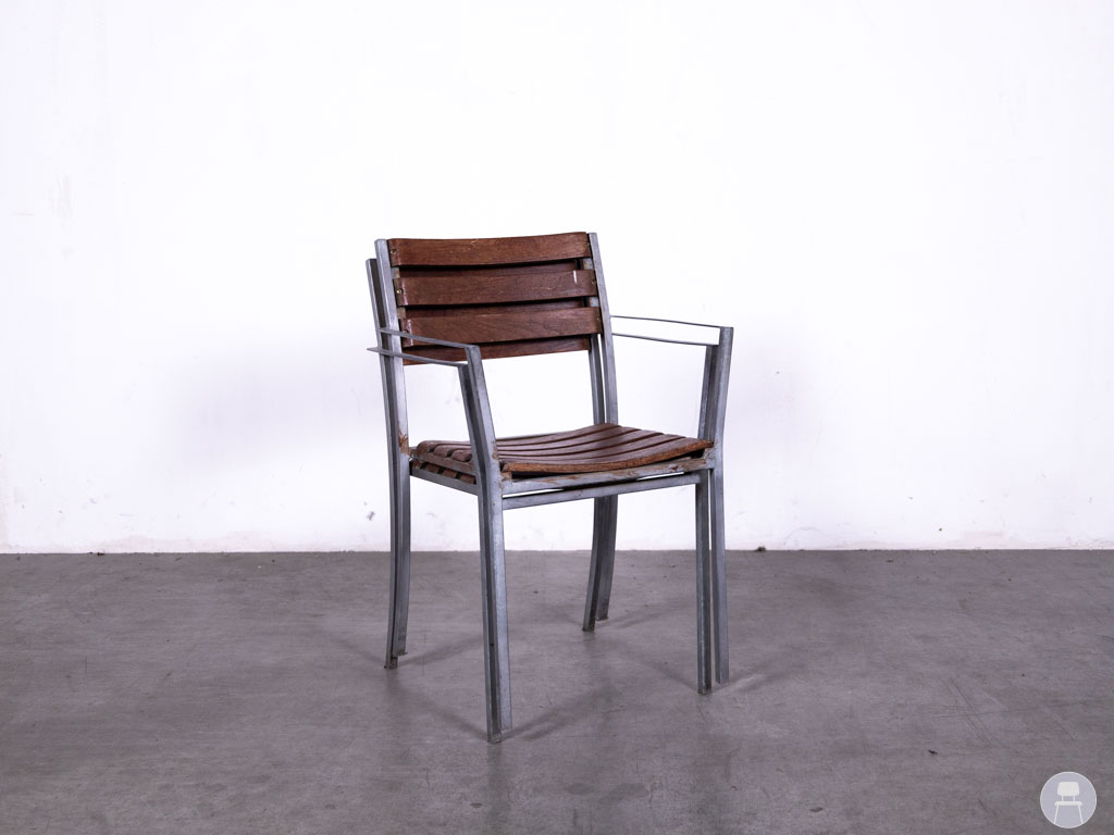 De armleuningen zorgen voor extra zitcomfort, terwijl het materiaalgebruik bestand is tegen intensief gebruik. Het frame is verzinkt en daardoor goed geschikt voor buitengebruik. De teakhouten latten hebben een natuurlijke uitstraling en zullen door gebruik en weersinvloeden verder vergrijzen – iets dat bij teak juist charme toevoegt. Let op: deze terrasstoel vertoont lichte gebruikssporen op het hout (zie foto). De functionaliteit blijft echter behouden en met wat onderhoud kan deze stoel nog jaren mee.