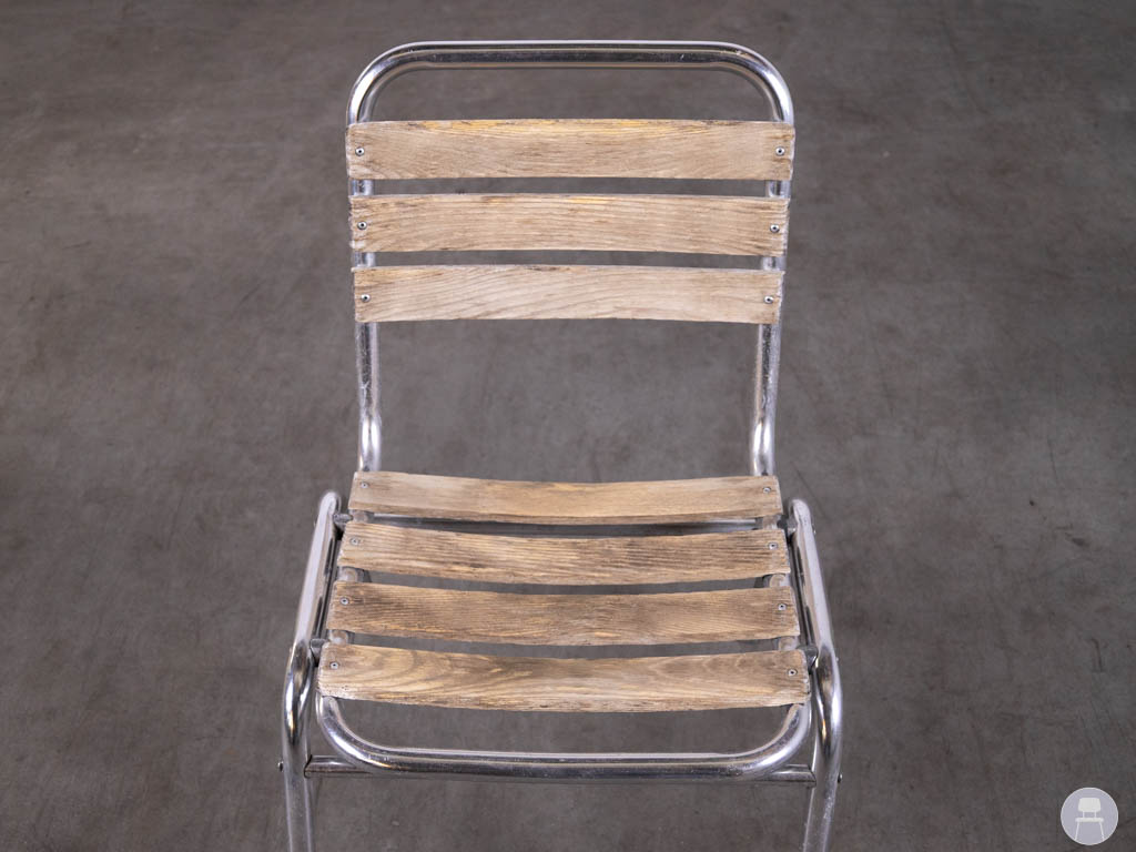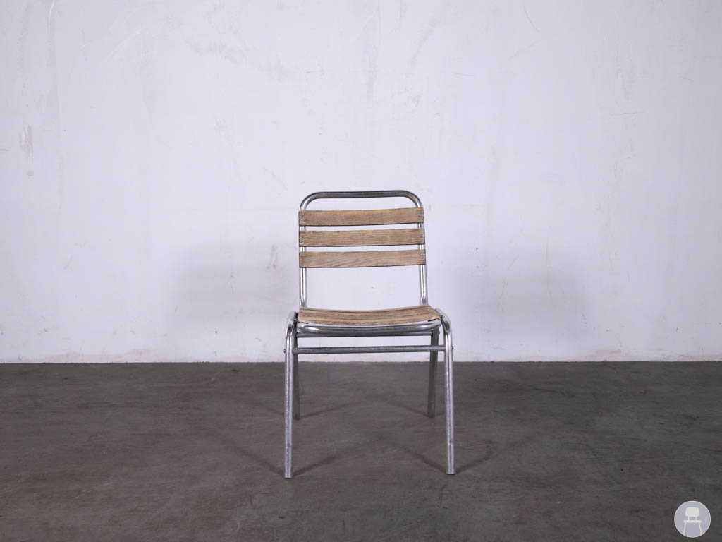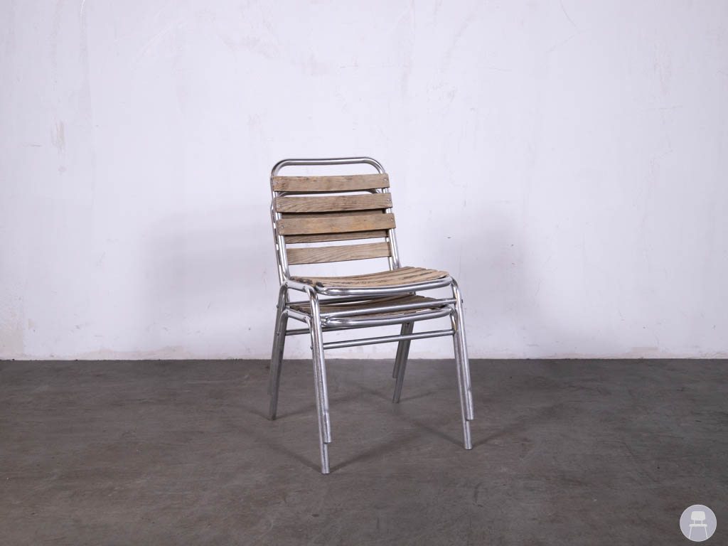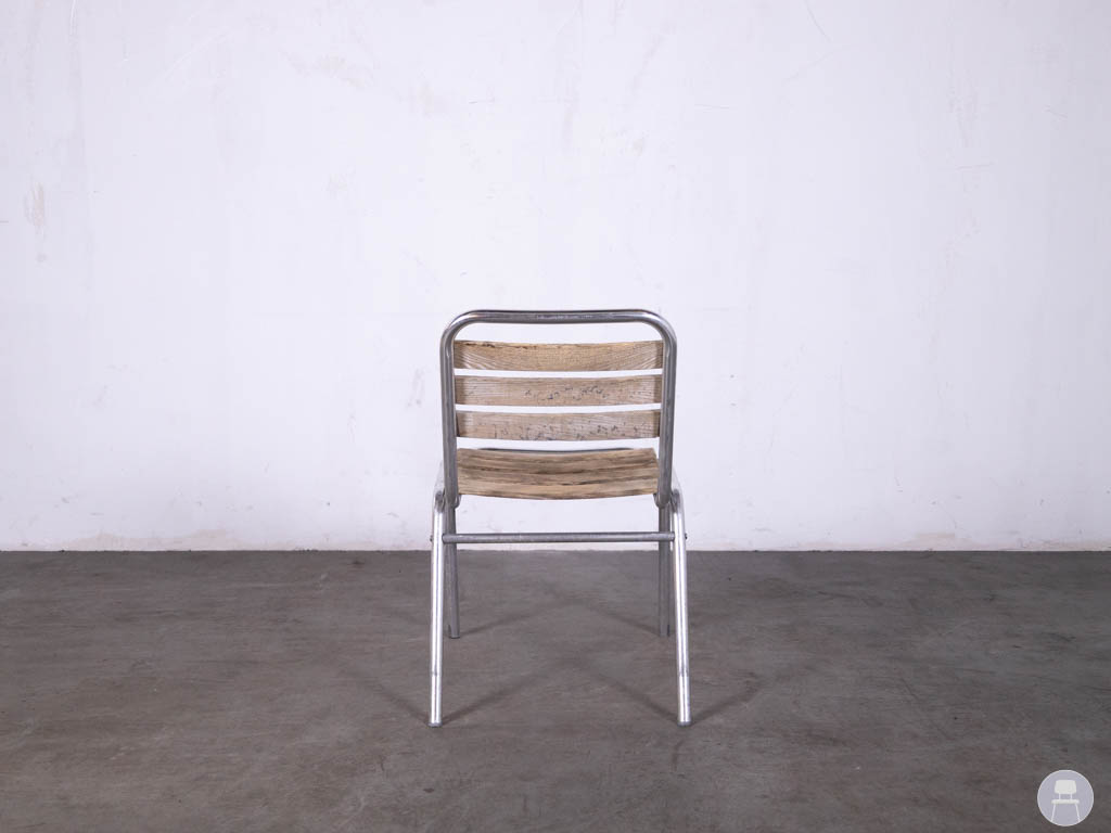 De zitting en rugleuning zijn uitgevoerd in teak, wat zorgt voor een warme uitstraling en prettig zitcomfort. Het stevige metalen frame maakt de stoel stabiel en geschikt voor intensief gebruik op terrassen van cafés, restaurants en hotels.