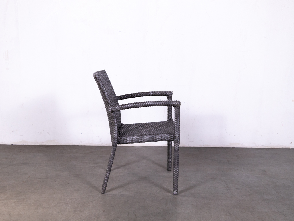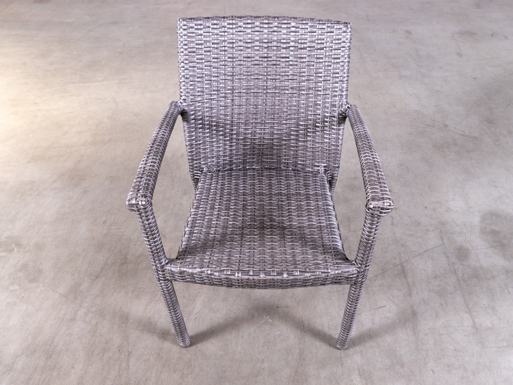 De volledig gevlochten zitting en rugleuning van wicker bieden een prettig zitcomfort en zijn daarnaast onderhoudsvriendelijk. Het frame van aluminium maakt de stoel licht van gewicht, weerbestendig en ideaal voor intensief gebruik in de horeca.