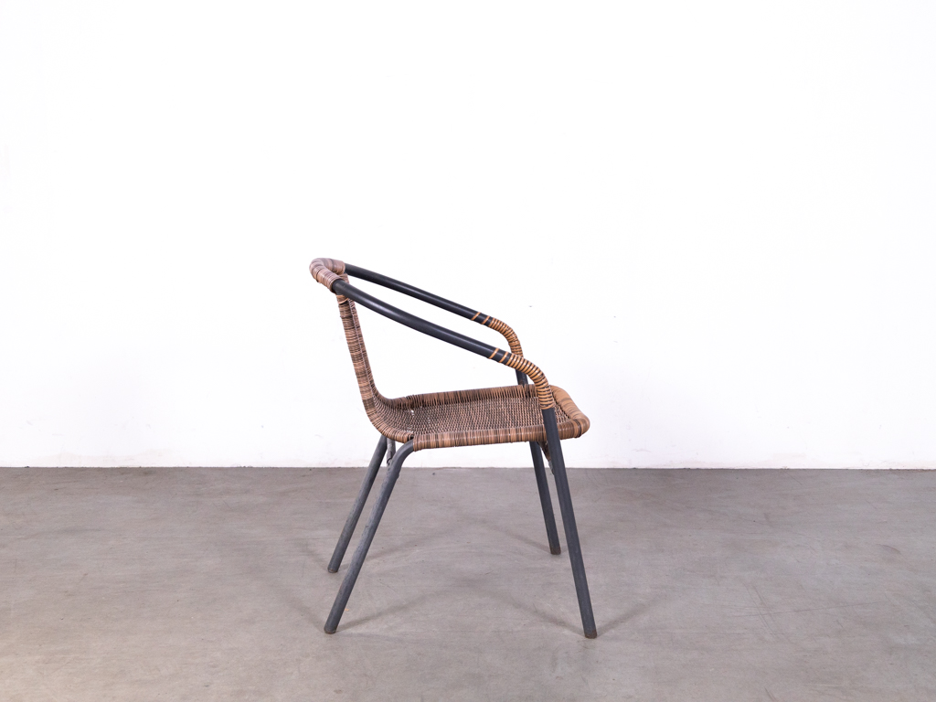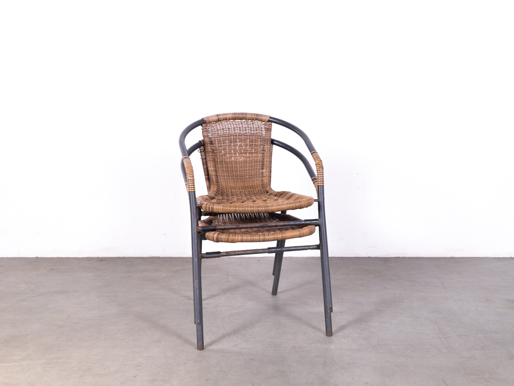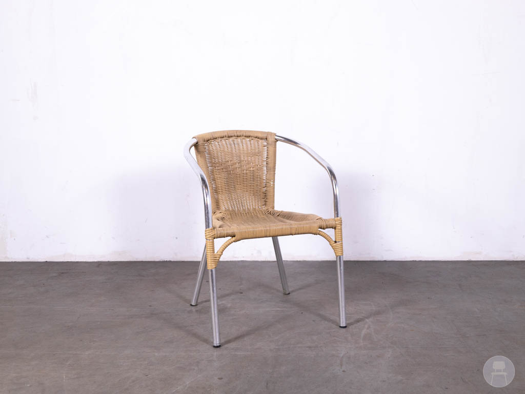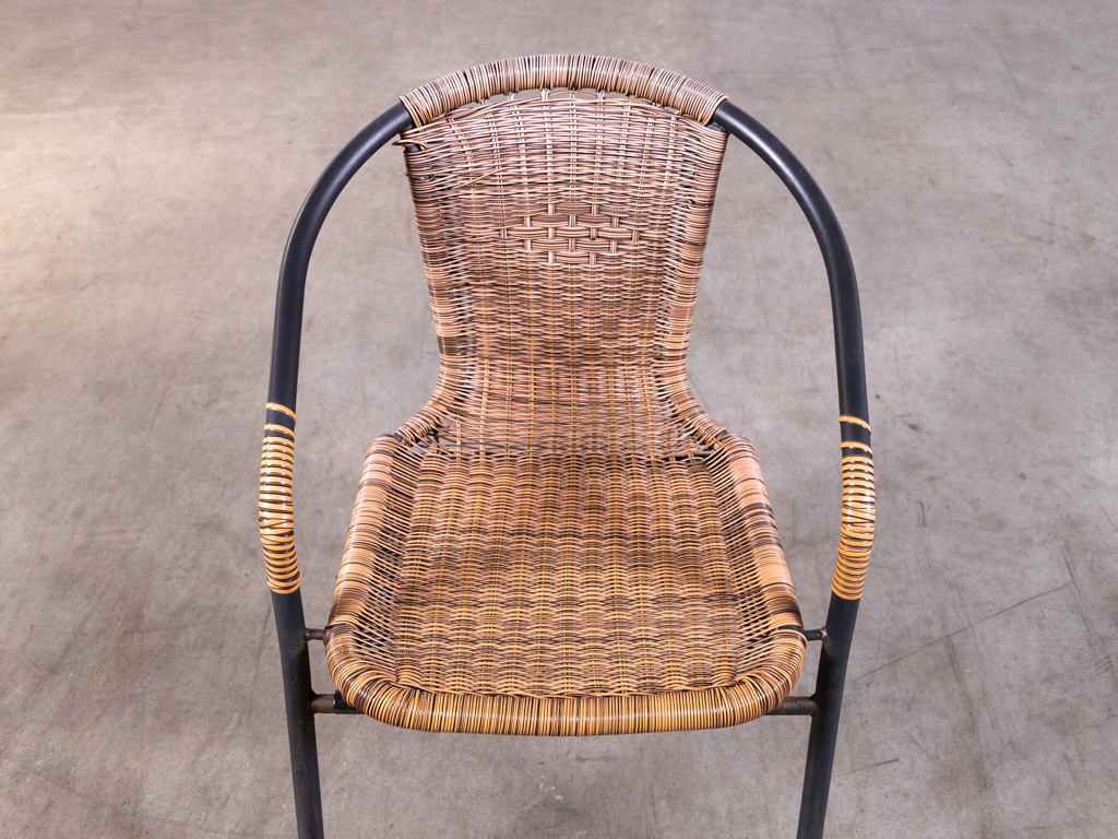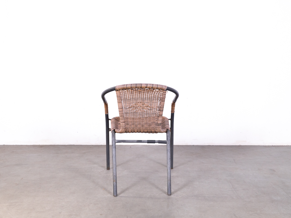 Het frame van metaal maakt de stoel stevig en geschikt voor intensief gebruik in de horeca, terwijl het gevlochten wicker zorgt voor een natuurlijke uitstraling en eenvoudig onderhoud.