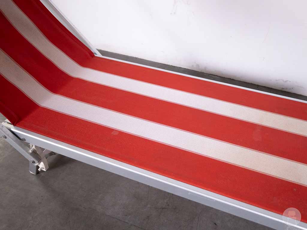 Ligbed Fayen rood wit is een comfortabel en zomers ogend ligbed, ontworpen voor ontspanning aan het strand, bij het zwembad of op een zonnig terras. Het frame is gemaakt van lichtgewicht en stevig aluminium, wat het bed niet alleen duurzaam maar ook eenvoudig verplaatsbaar maakt. De zitting bestaat uit een rood-wit gestreepte textiele loper die strak gespannen is en zich perfect vormt naar het lichaam voor een ontspannen ligpositie. Een opvallend kenmerk van dit ligbed is het geïntegreerde, verstelbare zonnenscherm, waarmee gebruikers eenvoudig hun gezicht kunnen beschermen tegen direct zonlicht zonder een aparte parasol nodig te hebben. Dankzij het opklapbare ontwerp en het onderhoudsvriendelijke materiaal is het Ligbed Fayen uitermate geschikt voor professioneel gebruik in de horeca of recreatiesector, maar ook ideaal voor de particuliere tuinliefhebber die houdt van comfort en retro charme.