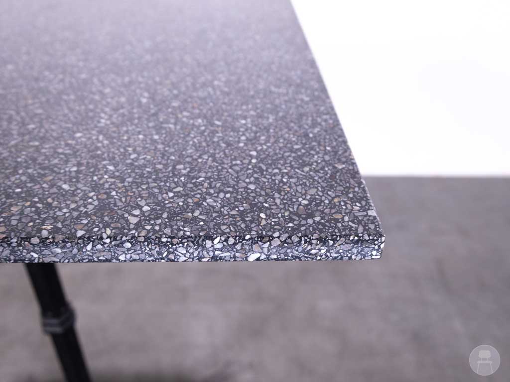 Tafelblad Beau stone terrazzo grijs Satelliet 70x60cm is een stijlvol en stevig tafelblad dat perfect past binnen een modern of industrieel interieur. Dit blad is uitgevoerd in een fraaie grijs/zwarte terrazzo-look met een speels patroon van kleine steentjes, wat zorgt voor een luxe en karaktervolle uitstraling. Met een afmeting van 70×60 cm is het blad ideaal voor gebruik in horecaomgevingen zoals cafés, lunchrooms of restaurants waar ruimte-efficiëntie belangrijk is.