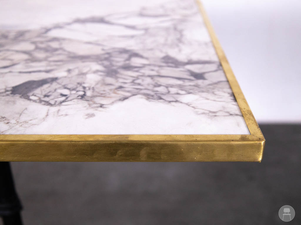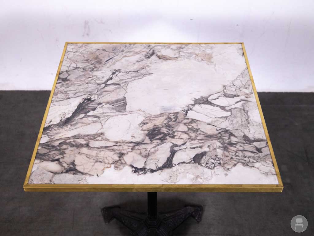 Tafelblad buiten Maaike mat werzalit marmerlook 70x70cm is een stijlvolle en weerbestendige keuze die direct luxe uitstraalt op elk horecaterras. Dit vierkante werzalit blad is voorzien van een verfijnde marmerlook in grijs-witte tinten, afgewerkt met een elegante, matte gouden omlijsting. Het resultaat? Een eyecatcher die klasse toevoegt aan elke buitenopstelling, zonder in te leveren op duurzaamheid of gebruiksgemak.