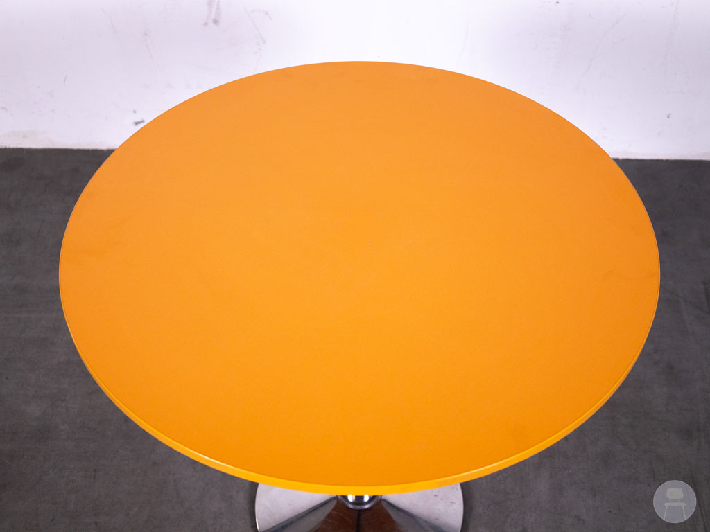 Het onderstel met chromen afwerking geeft de horecatafel een moderne en strakke look, terwijl het stevige design garant staat voor stabiliteit en duurzaamheid. Met zijn praktische formaat van 80 cm rond biedt de Anja oranje voldoende ruimte voor meerdere gasten zonder dat hij te veel plek inneemt. Perfect om je interieur of terras een vrolijke en eigentijdse touch te geven.