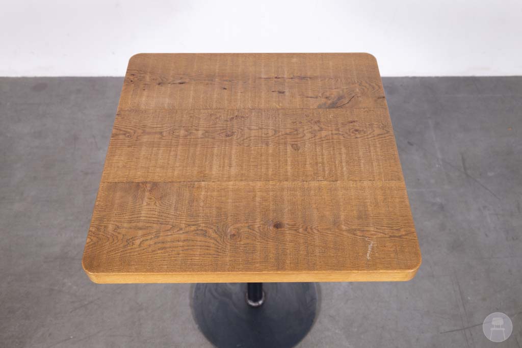 Horecatafel Barry vierkant eiken 60x60cm bewijst dat eenvoud en karakter perfect samen kunnen gaan. Het vierkante tafelblad van massief eikenhout straalt vakmanschap uit en laat de natuurlijke houttekening prachtig tot zijn recht komen. De subtiele veroudering en warme tint van de horecatafel geven een doorleefde uitstraling zonder oubollig te zijn. Ideaal voor een interieur met een verhaal. Het formaat van 60×60 cm is compact en praktisch, zonder in te leveren op uitstraling.