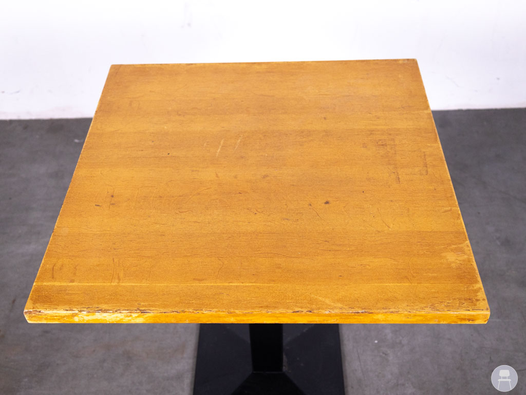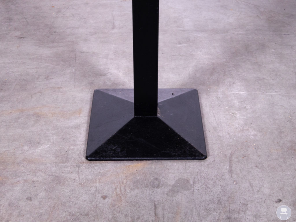 Het zwarte metalen onderstel in piramidevorm zorgt voor een stabiele basis en een subtiel industrieel accent. Met zijn afmeting van 70×70 cm is deze tafel ideaal voor twee personen, maar ook makkelijk te combineren in een flexibel tafelplan. Op zoek naar een tweedehands horecatafel met een verhaal en een doorleefde charme? Dan is Berend een sfeervolle en functionele keuze.
