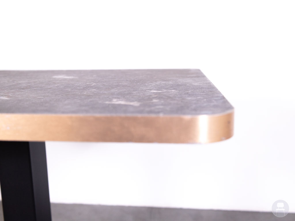 Horecatafel Chic melamine marmerlook koper 120x80cm is een moderne horecatafel met een luxe uitstraling. Deze tafel is uitgevoerd met een melamine blad in marmerlook met een subtiele koperkleurige rand, gecombineerd met een zwart metalen onderstel.