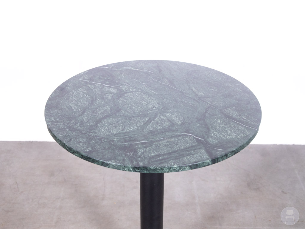 Horecatafel Crocodile Marmer Groen Satelliet 60cm Rond is een stijlvolle blikvanger die luxe en functionaliteit moeiteloos combineert. Het diepe, groene marmeren tafelblad met subtiele ‘crocodile’ textuur zorgt voor een unieke en luxe uitstraling die onmiddellijk opvalt in elke horecazaak. De donkere aders en glanzende afwerking geven het blad een premium look die perfect past in een modern, industrieel of chic interieur.