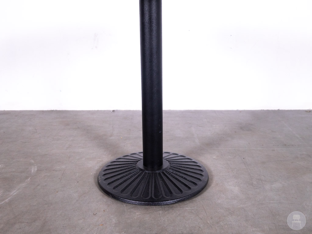 Het ronde formaat van 60 cm maakt deze tafel ideaal voor kleinere ruimtes of intieme zitplekken. Denk aan een elegant hoekje in een café, een stijlvolle bistro of een verfijnde hotellounge. De solide zwarte trompetvoet van Satelliet zorgt niet alleen voor stabiliteit, maar geeft de tafel ook een professionele uitstraling. Dankzij het slimme design blijft de vloer vrij van hinderlijke poten, wat prettig is voor gasten én personeel.