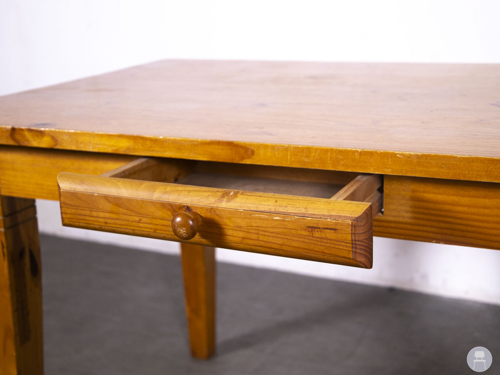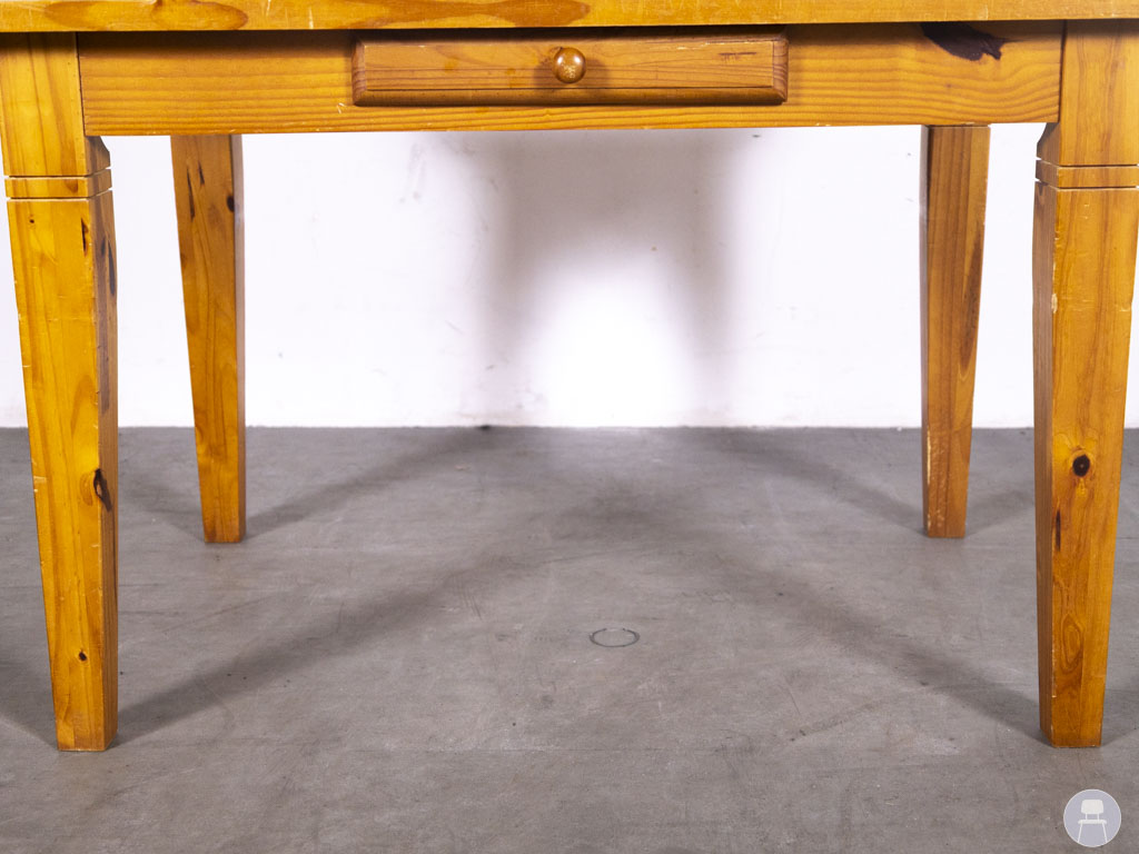 Horecatafel Geertje 120x80cm is een sfeervolle en stevige houtkleurige horecatafel met een warme uitstraling. Het blad toont natuurlijke houttekeningen die zorgen voor een uitnodigend en huiselijk karakter, ideaal voor cafés of eetzalen met een rustieke of landelijke inrichting. De massieve poten geven stabiliteit en maken deze tafel geschikt voor dagelijks intensief gebruik in de horeca. Opvallend is de kleine centrale lade onder het blad, perfect voor het opbergen van menukaarten of bestek. Met zijn praktische formaat van 120×80 cm biedt de tafel ruimte voor 4 personen zonder te veel vloeroppervlak in beslag te nemen. Zoals op de foto’s is te zien, heeft het blad gebruikerssporen.