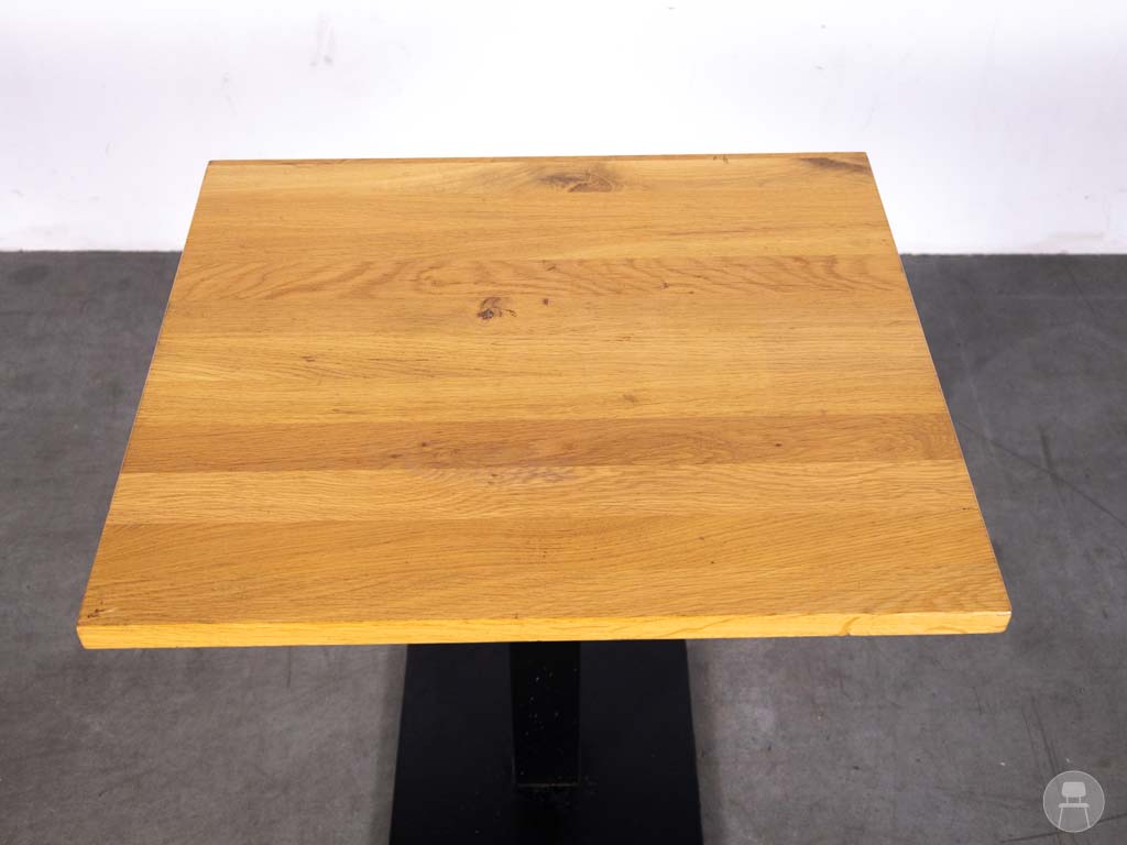 Horecatafel Izi eiken naturel 70x60cm geeft jouw horecazaak direct een warme, moderne uitstraling! Deze tafel combineert een stevig zwart stalen onderstel met een prachtig naturel eikenhouten blad, wat zorgt voor een stijlvolle balans tussen industrieel en natuurlijk design. Het compacte formaat van de horecatafel is ideaal voor kleinere terrassen, cafés of bistro’s, zonder in te leveren op sfeer of stabiliteit.