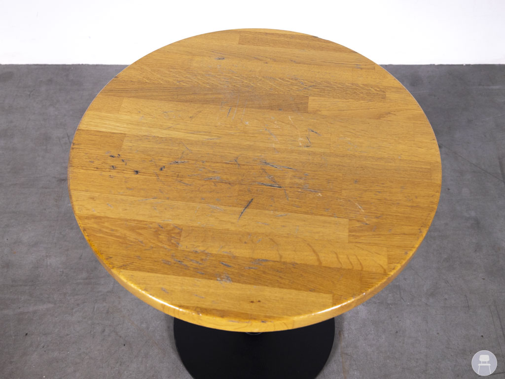 Horecatafel Julia eiken 60cm rond is een compacte horecatafel met een rond eikenhouten blad van 60 cm doorsnee en een zwarte metalen middenpoot met ronde voet. Door het stevige ontwerp is deze tafel perfect geschikt voor cafés, lunchrooms of kleine horecaruimtes. Het eiken blad toont gebruikssporen, wat zorgt voor een doorleefde, authentieke uitstraling. Deze tafel is ideaal voor liefhebbers van karaktervol meubilair.
