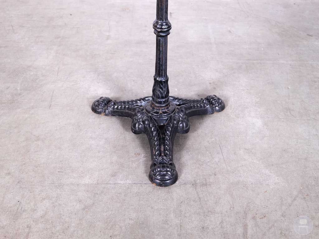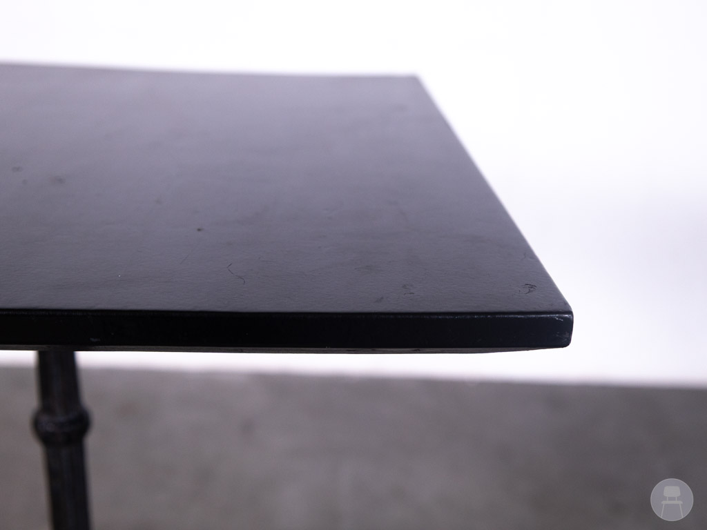 Horecatafel Loes zwart 50x50cm is een compacte krachtpatser met een stijlvolle uitstraling die perfect past in elk horeca interieur. Met een zwart houten blad en een sierlijk vormgegeven gietijzeren onderstel straalt deze tafel klasse en robuustheid uit. Het vierkante formaat van 50×50 cm maakt Loes bijzonder geschikt voor kleine zitplekken, knusse hoekjes of als flexibele tafel op een terras of in een koffiebar.