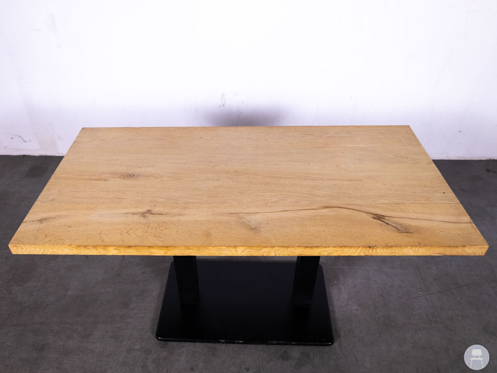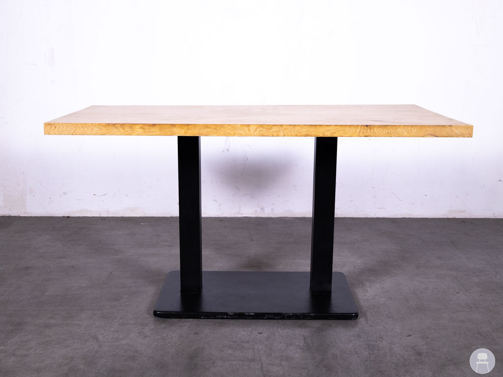 Het dikke eiken blad straalt karakter uit en is tegelijkertijd duurzaam en stevig. De dubbele stalen kolompoot op een rechthoekige voet zorgt voor stabiliteit én een strakke vormgeving. Deze horecatafel is niet alleen praktisch in gebruik, maar ook een stijlvolle toevoeging aan iedere horecaruimte.