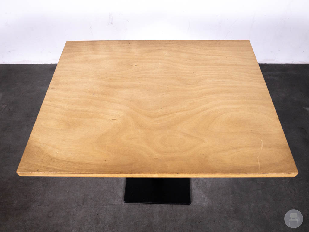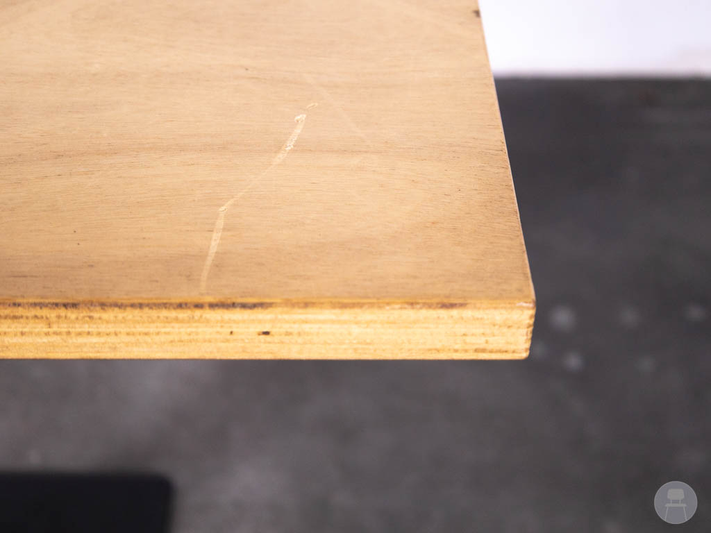 De tafel heeft lichte gebruikssporen op het blad, wat hem een authentiek en doorleefd karakter geeft. Dankzij de stevige constructie en neutrale vormgeving laat de tafel zich moeiteloos combineren met verschillende stoelen en interieurstijlen. Een solide keuze voor ondernemers die op zoek zijn naar functioneel meubilair met een natuurlijke uitstraling.