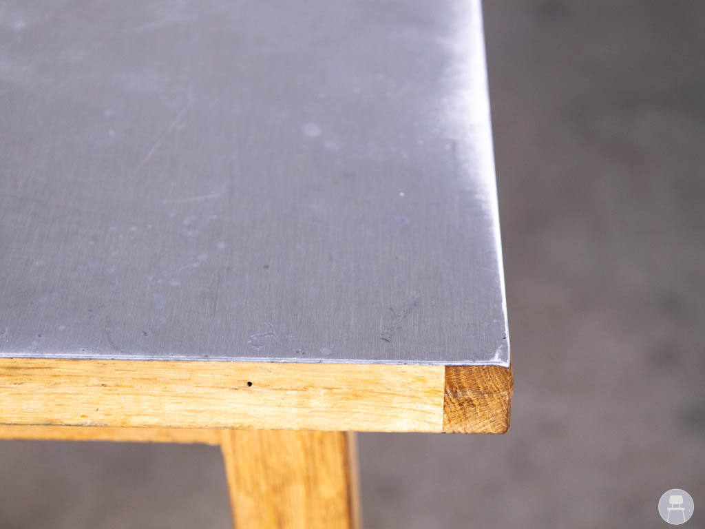 Het metalen tafelblad is slijtvast en eenvoudig schoon te maken, wat de tafel zeer praktisch maakt voor dagelijks gebruik in de horeca. Het stevige houten frame zorgt voor stabiliteit en geeft de horecatafel Metal een warme uitstraling die mooi contrasteert met het stoere blad.