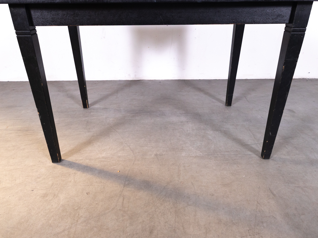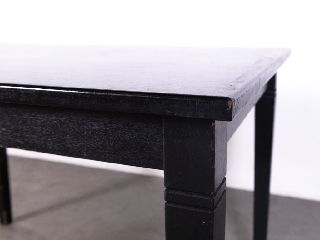 Het tafelblad en onderstel zijn volledig vervaardigd uit hout, wat zorgt voor een robuuste en stabiele constructie. De zwarte afwerking geeft de tafel een moderne en veelzijdige uitstraling die eenvoudig te combineren is met verschillende horecastoelen.