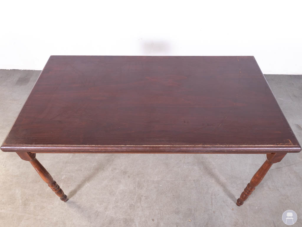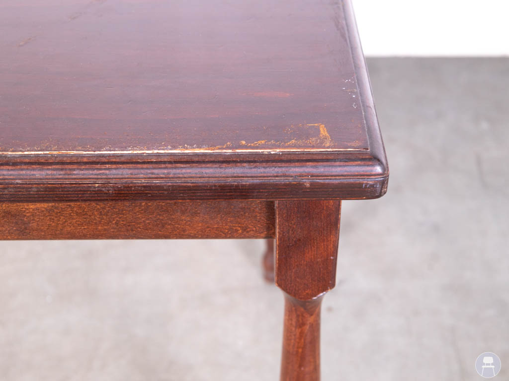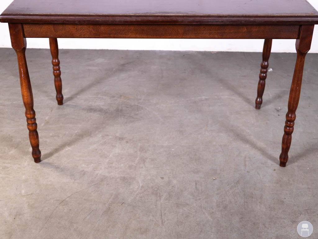 Het stevige houten onderstel met sierlijke poten zorgt voor stabiliteit en een elegante uitstraling. Hierdoor is de tafel geschikt voor dagelijks gebruik in de horeca. Het tafelblad heeft lichte gebruikssporen, wat bij tweedehands horecameubilair vaak voorkomt en juist bijdraagt aan het authentieke karakter van de tafel.