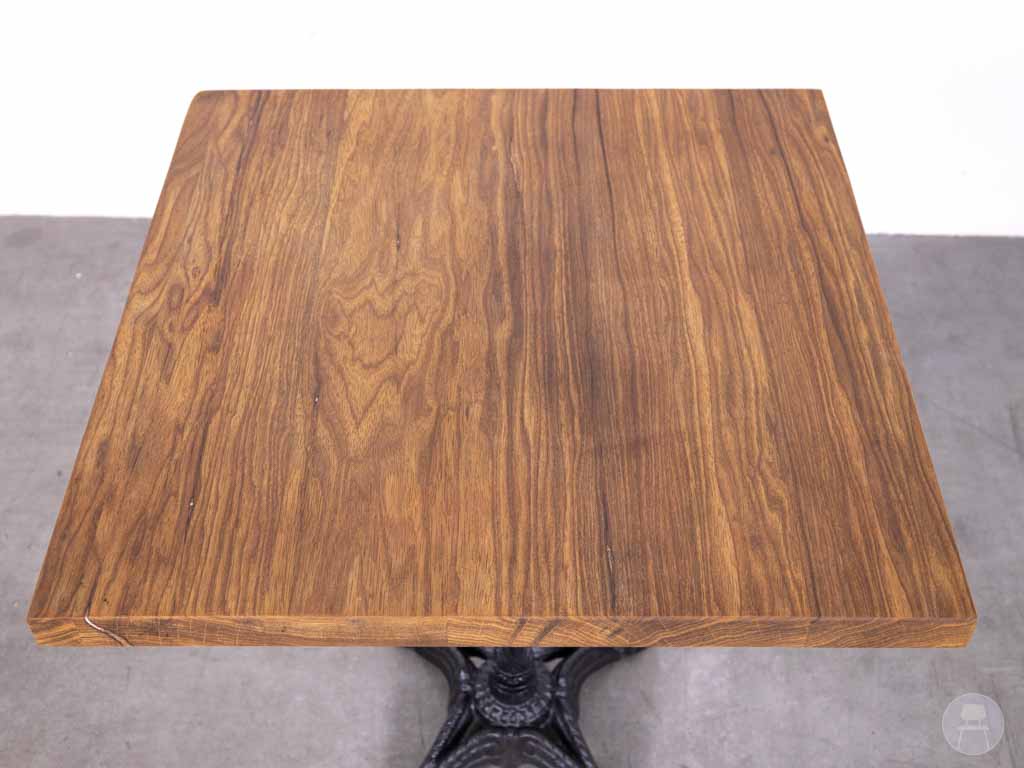 Horecatafel Sim 70x70cm is een stijlvolle klassieker die direct warmte en karakter toevoegt aan elk horeca interieur. Het stevige hardhouten blad straalt ambacht en kwaliteit uit en heeft een prachtige nerfstructuur die zorgt voor een natuurlijke, warme uitstraling. Het gietijzeren onderstel is sierlijk vormgegeven, biedt uitstekende stabiliteit en sluit perfect aan bij een vintage of klassiek interieur. Of je nu een gezellige brasserie, knusse lunchroom of stijlvol restaurant runt, deze horecatafel voelt zich overal thuis. Met zijn afmeting van 70×70 cm is de Sim ideaal voor twee tot vier personen en perfect voor sfeervolle binnen toepassingen. De combinatie van hout en gietijzer maakt deze tafel niet alleen tijdloos, maar ook bijzonder duurzaam. Een echte aanwinst voor elke ondernemer die gaat voor uitstraling, degelijkheid én comfort.