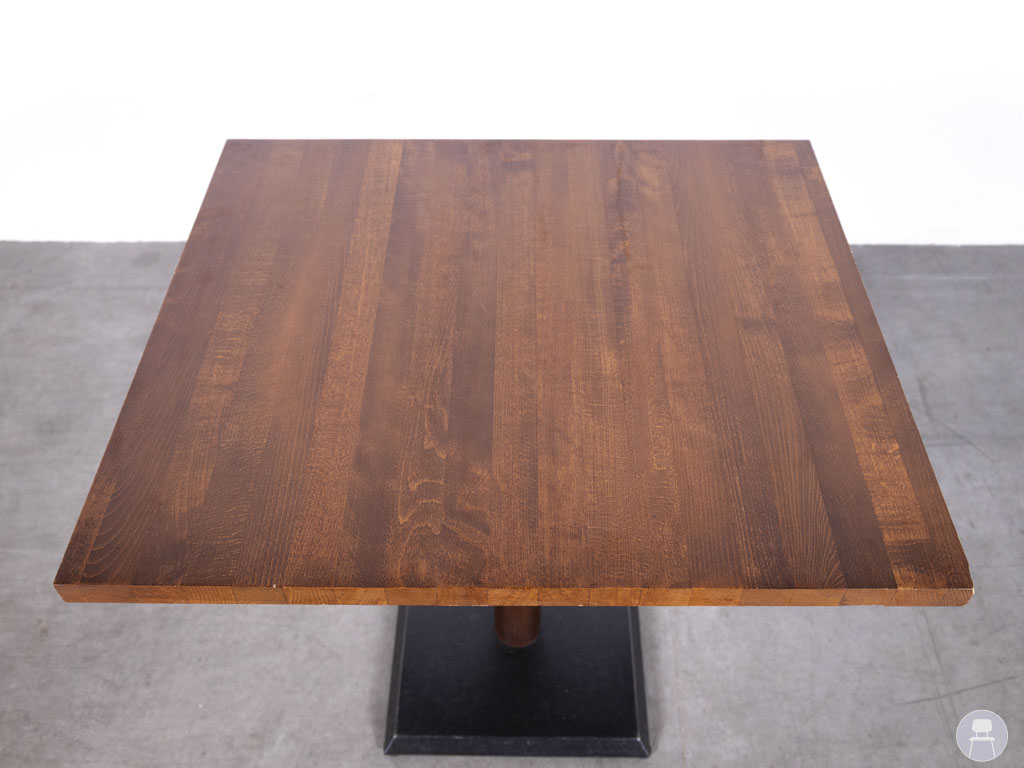 Horecatafel Ties bruin 70x80cm is een compacte en stijlvolle horecatafel met een warme, bruine houten uitstraling. Het stevige blad rust op een stabiele centrale poot met een metalen voet, wat zorgt voor een strakke en tijdloze look. Dankzij het praktische formaat van 70 x 80 cm is deze tafel perfect voor cafés, restaurants of lunchruimtes. Let op: het blad vertoont lichte beschadigingen. Een degelijke horecatafel met karakter, die nog prima dienst kan doen in een sfeervolle setting.