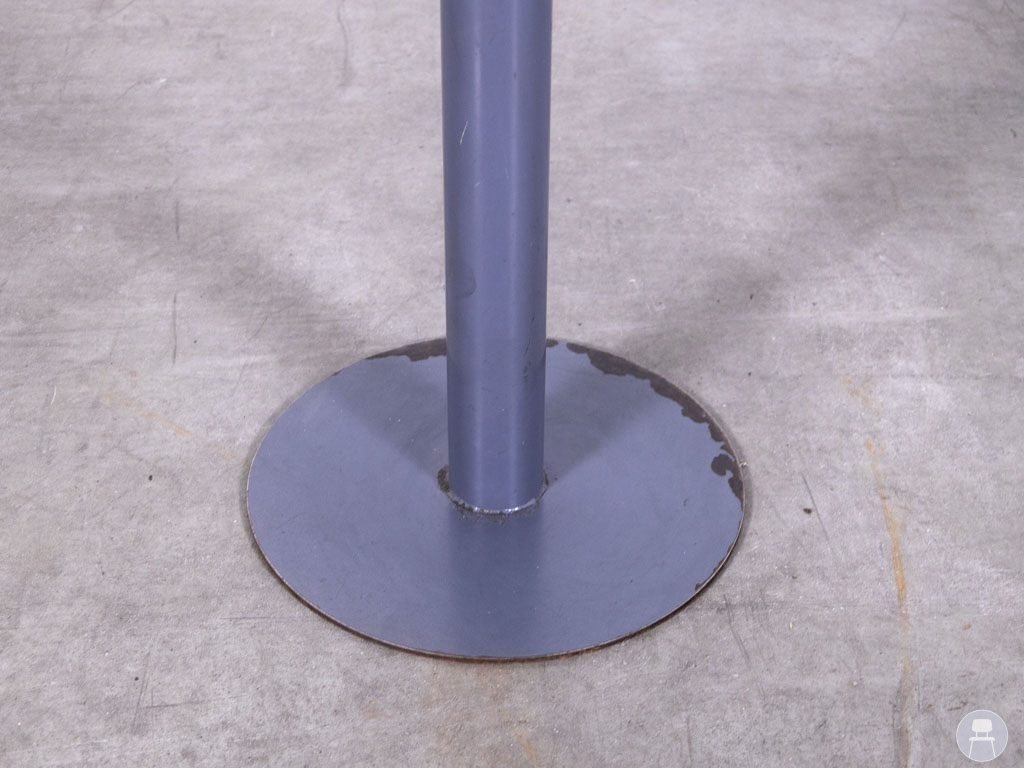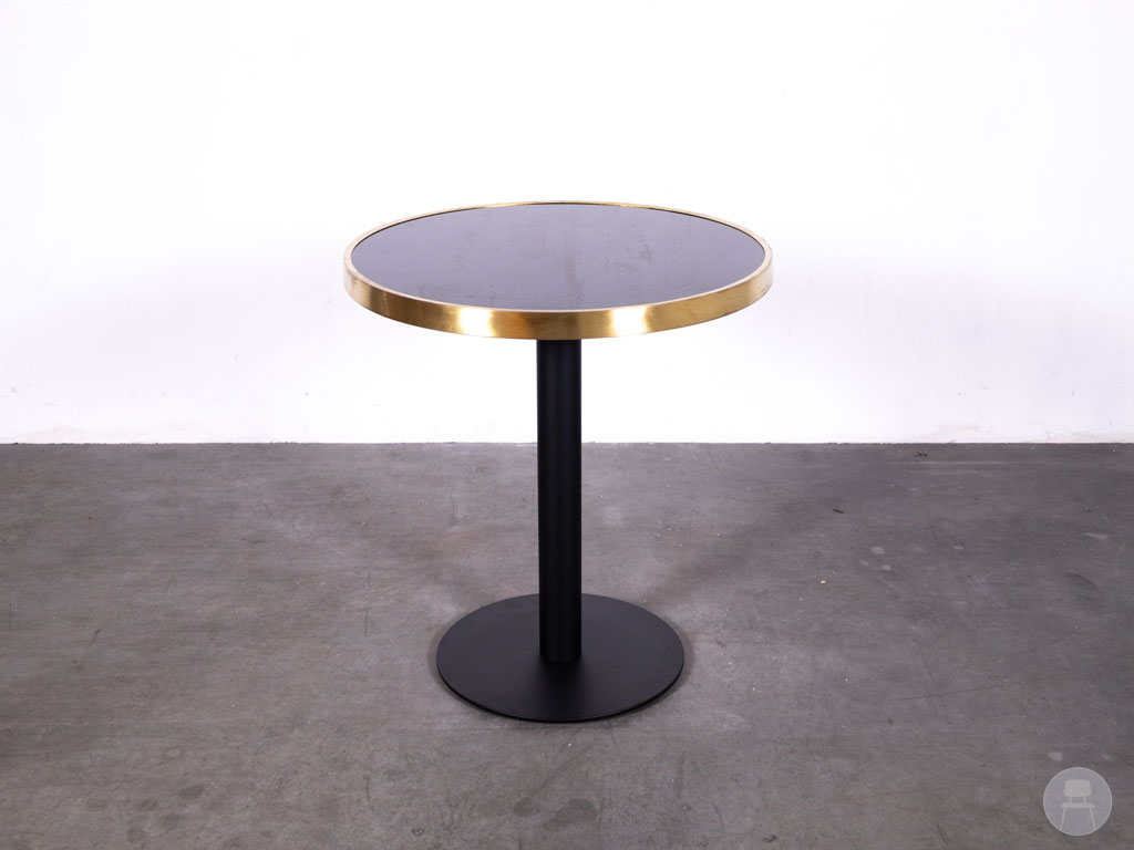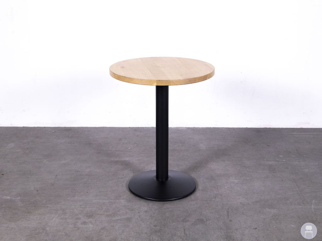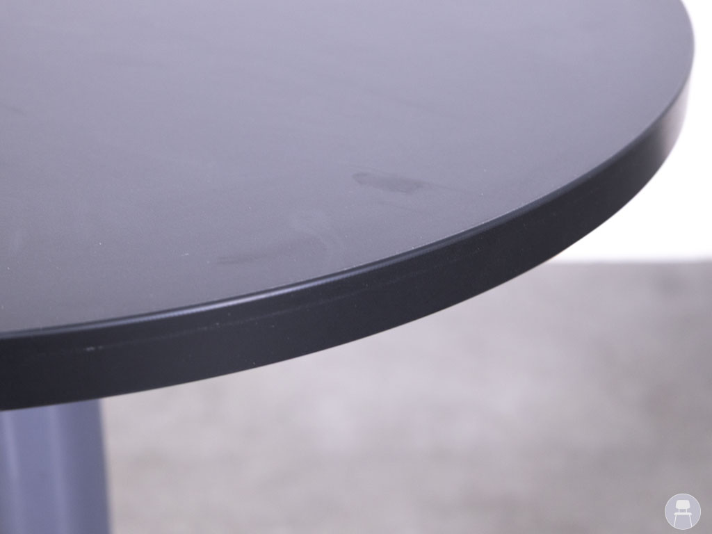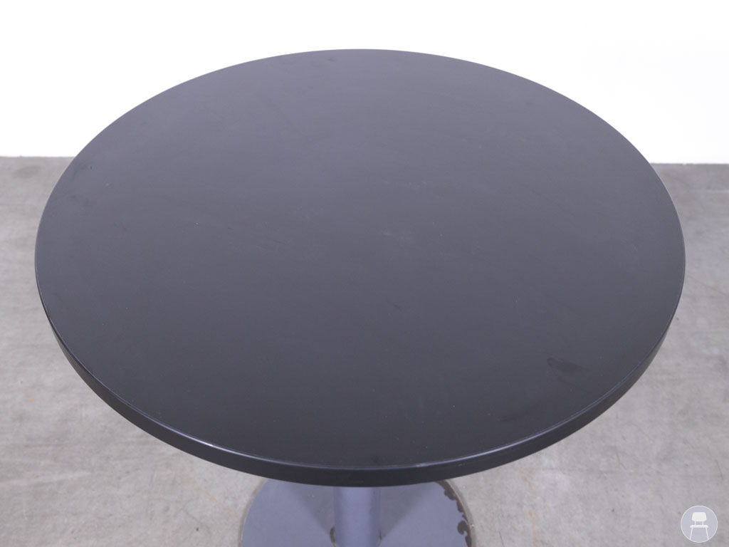 Horecatafel Walter zwart 70cm rond is een stevige ronde horecatafel met een bladdiameter van 70 cm, uitgevoerd in stijlvol zwart. Het blad rust op een stabiele middenpoot constructie, gemaakt van grijs metaal en voorzien van een ronde voetplaat. De tafel heeft een robuuste en industriële uitstraling, mede dankzij de zichtbare gebruikssporen op de voet, wat zorgt voor een geleefde, karaktervolle look. Deze tafel is uitermate geschikt voor cafés, restaurants of andere horecagelegenheden waar een stevige en praktische tafel gewenst is. Ook in een creatieve werkruimte komt hij goed tot zijn recht dankzij het functionele en tijdloze ontwerp.