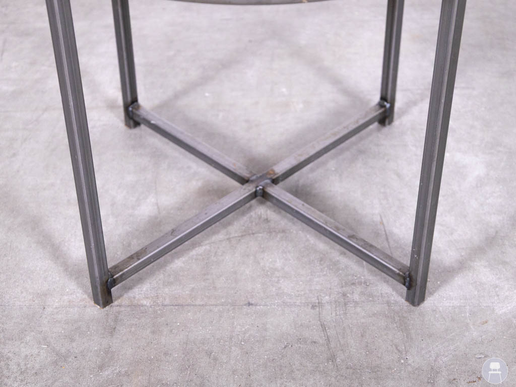 Met een diameter van 50 cm is deze bijzettafel compact maar praktisch: perfect voor het serveren van drankjes, een menukaart of een decoratief accent. De tafel heeft lichte gebruikssporen die bijdragen aan zijn vintage uitstraling, maar hij blijft stevig en stijlvol. Kristel is dé keuze voor horecaondernemers die houden van tijdloos design met een rauw randje.