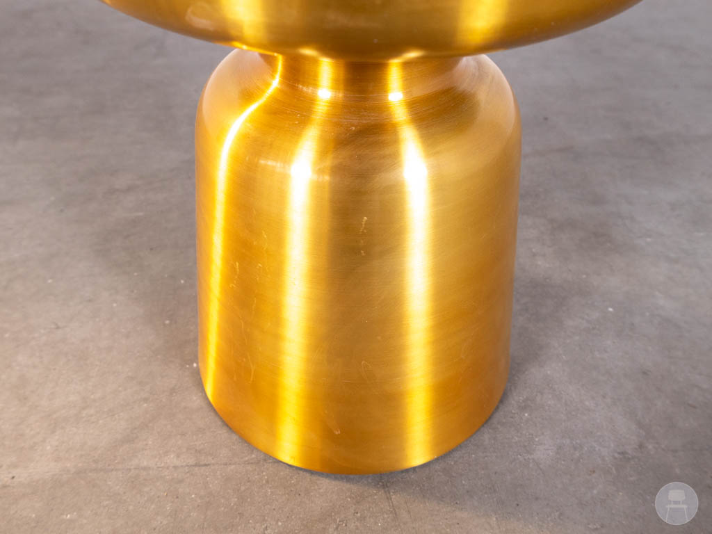 Deze gouden bijzettafel is perfect als horeca bijzettafel, lounge tafel of design bijzettafel en geeft iedere ruimte direct een luxe en warme uitstraling.