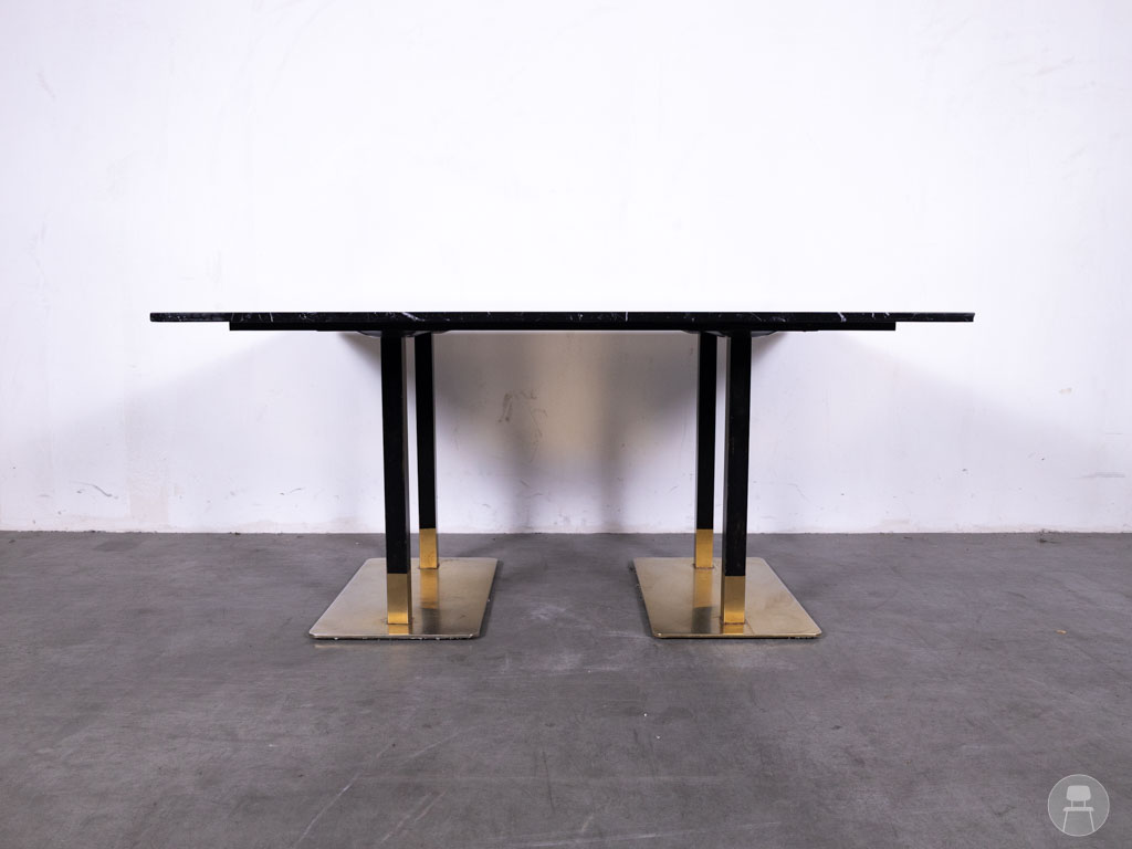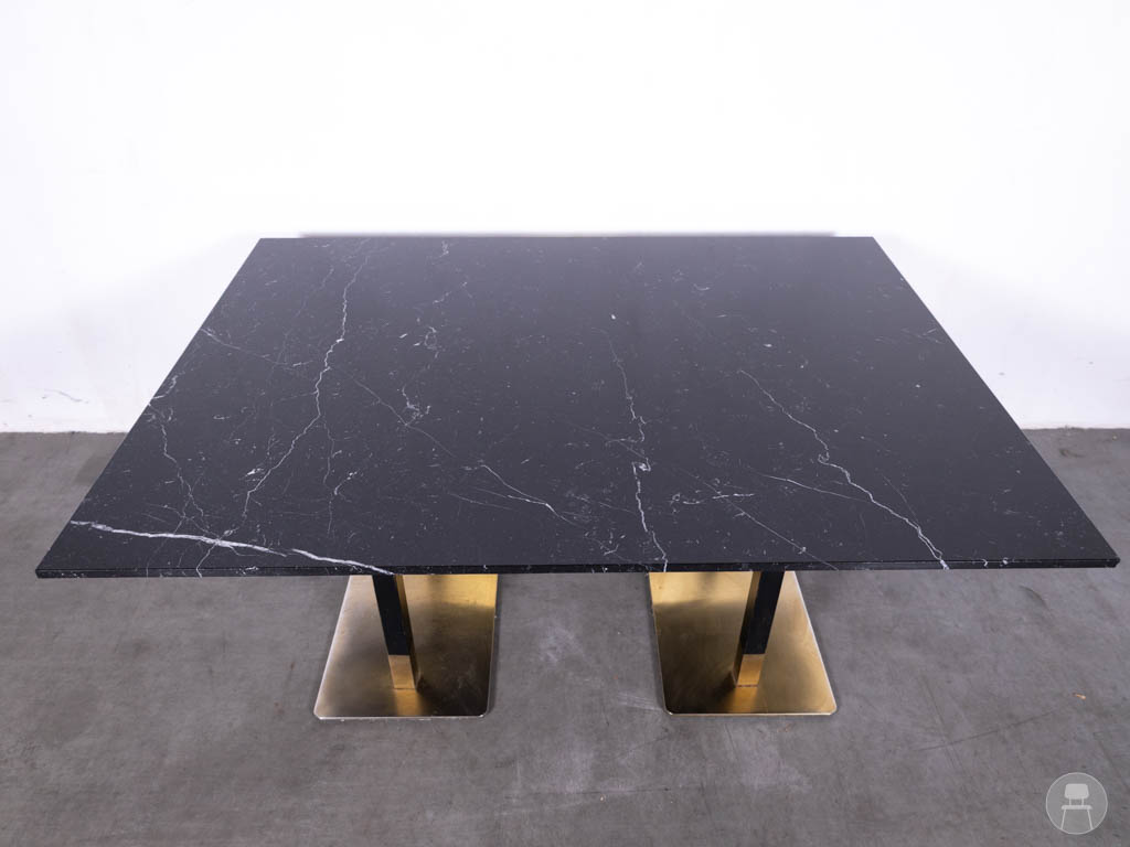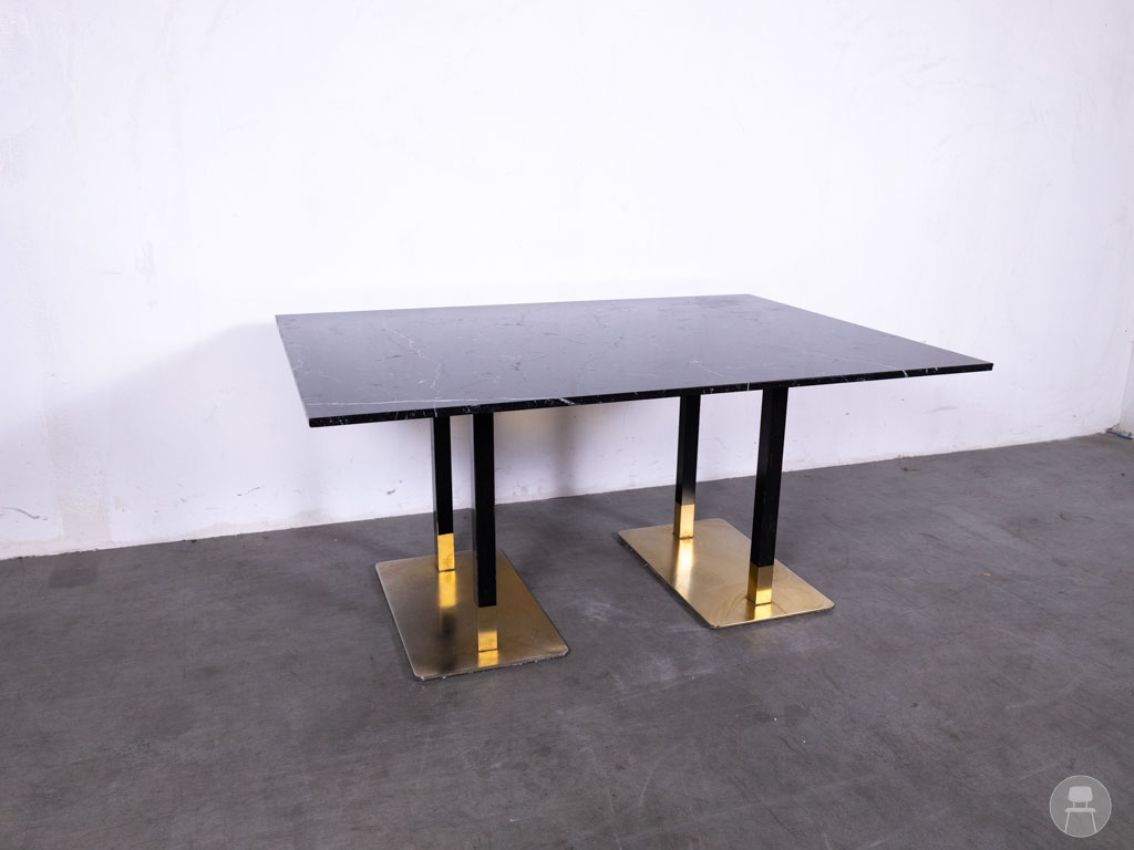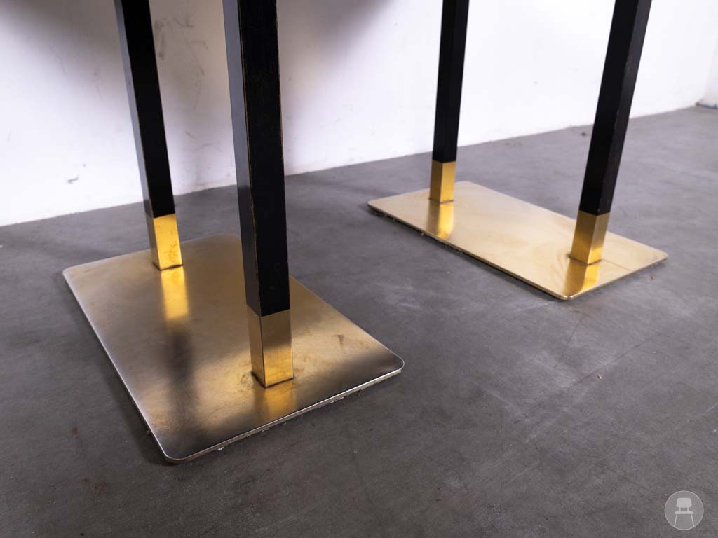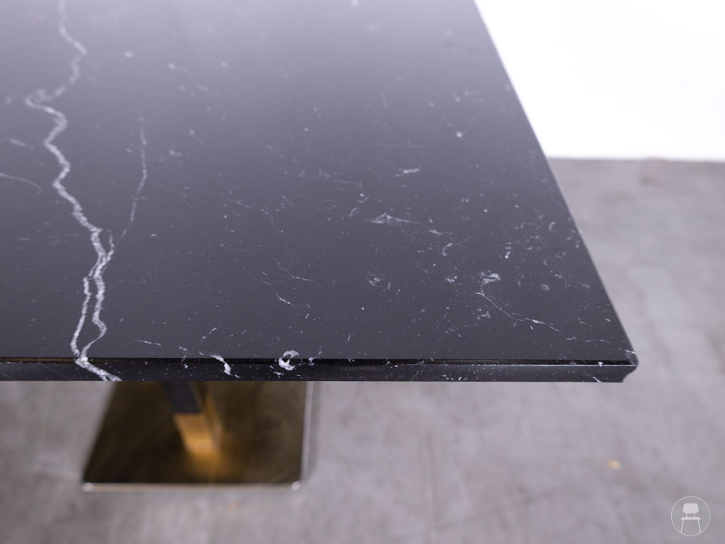 Het stevige stalen onderstel is voorzien van een gouden afwerking die schittert onder het blad en zorgt voor een stijlvol contrast met het donkere marmer. Dankzij de combinatie van robuuste kwaliteit en verfijnd design is de Aladin niet alleen een lust voor het oog, maar ook perfect bestand tegen dagelijks horecagebruik. Een absolute must-have voor ondernemers met smaak!