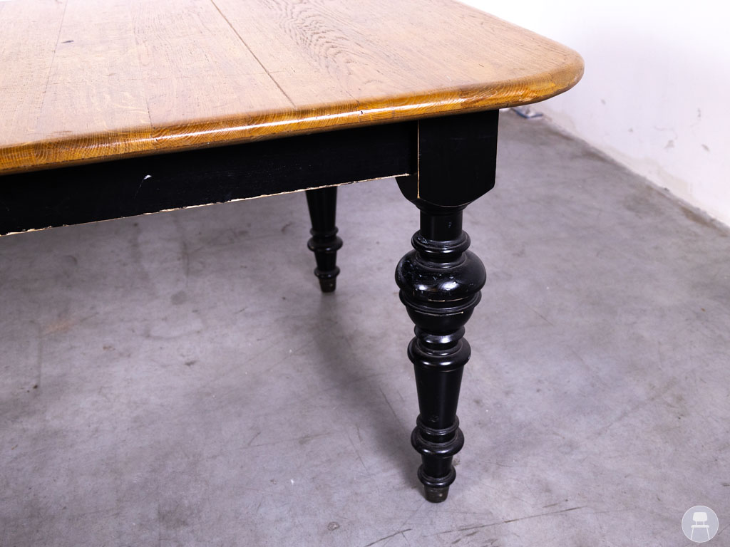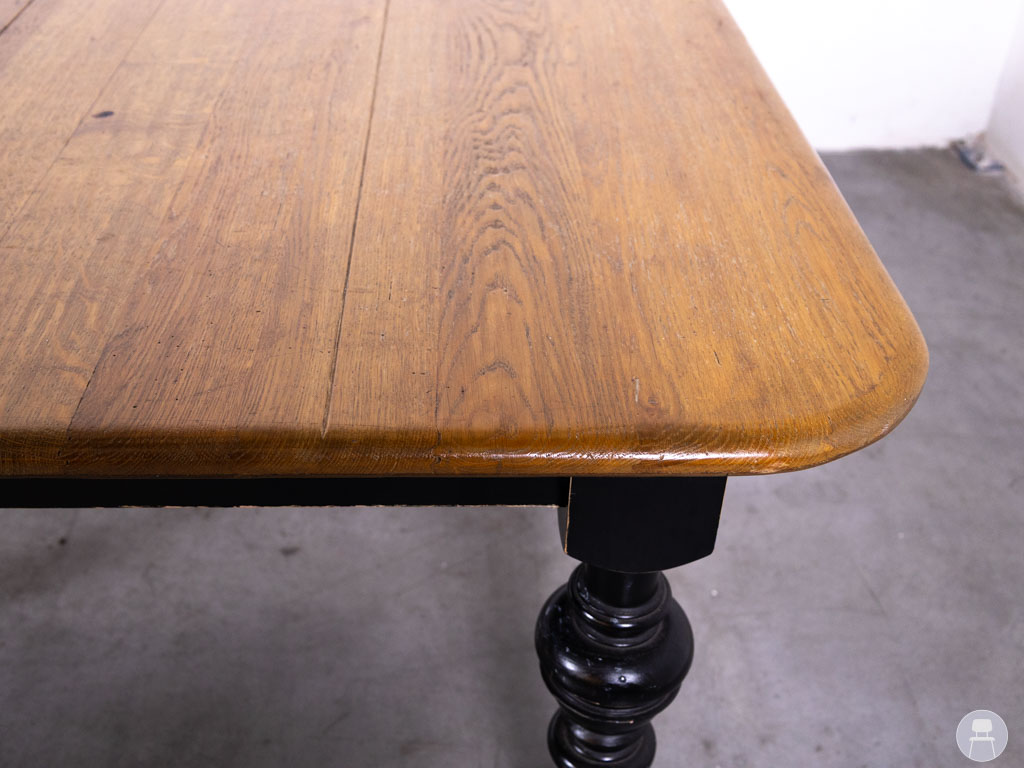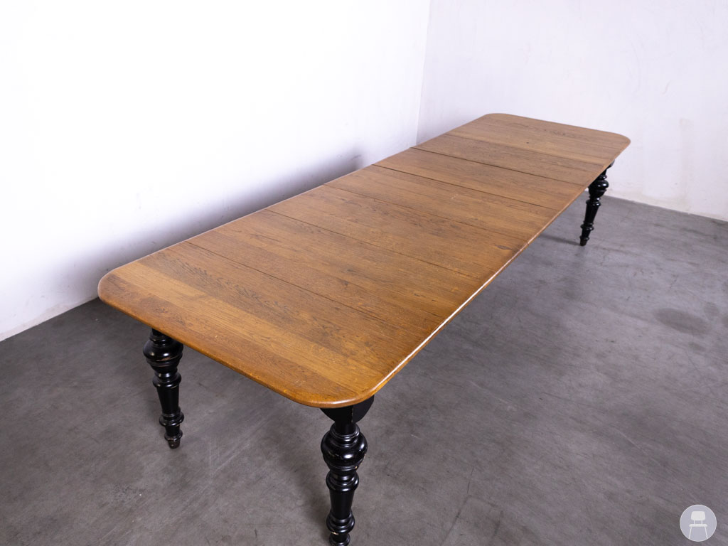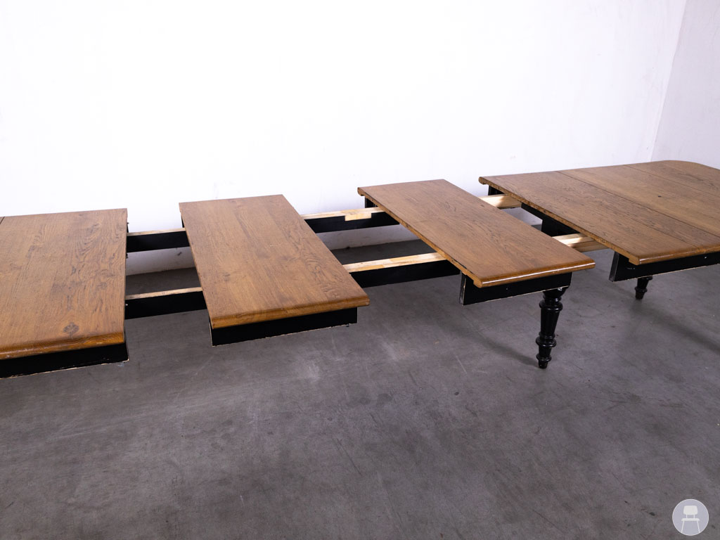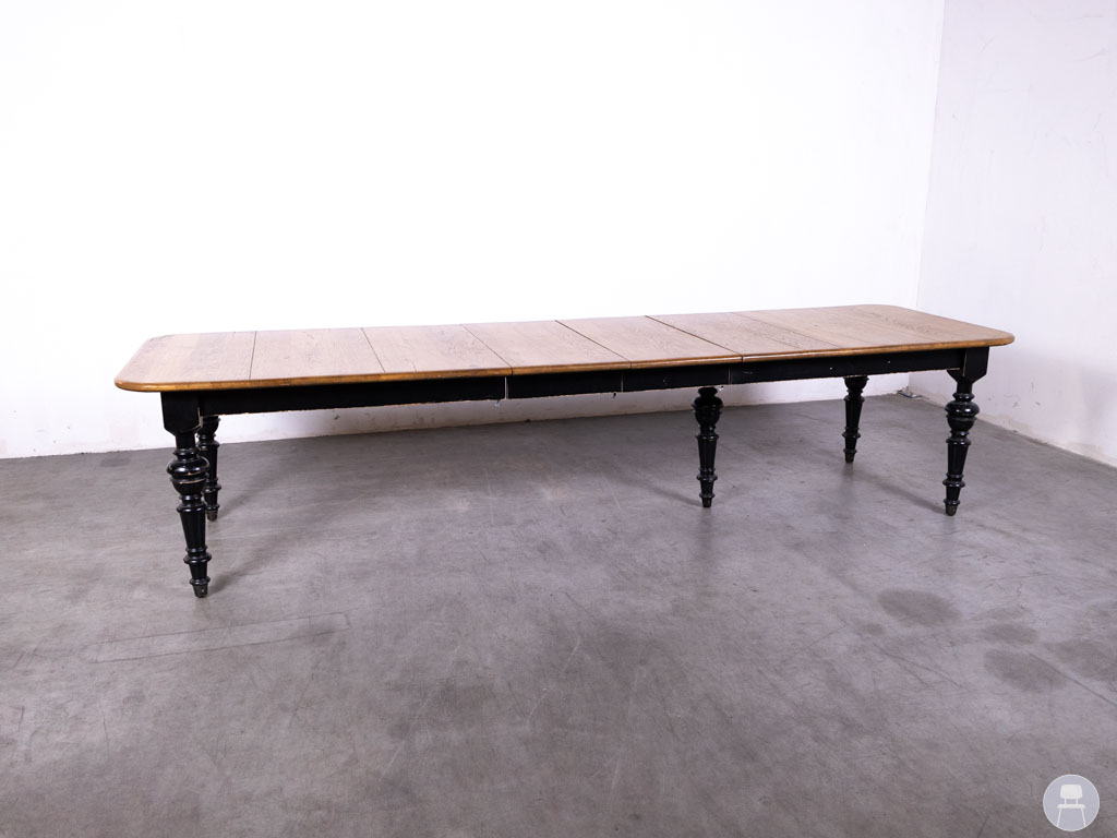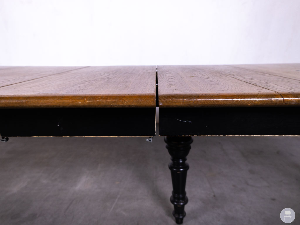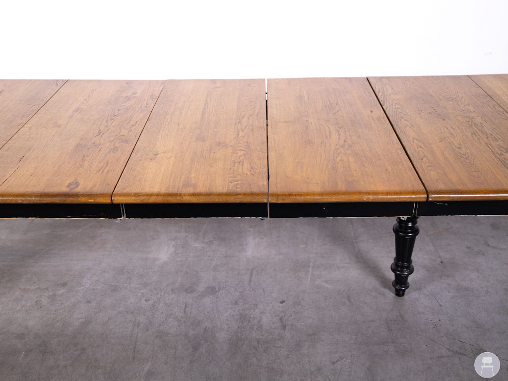 Stamtafel Sammy eiken uitschuifbaar 240-320cm is een robuuste en stijlvolle horecatafel die ideaal is voor grotere gezelschappen. Het tafelblad is gemaakt van massief eikenhout en straalt warmte en karakter uit. Dankzij de klassieke zwart gedraaide poten krijgt de tafel een elegante, tijdloze uitstraling die perfect past in restaurants, cafés of brasserieën.