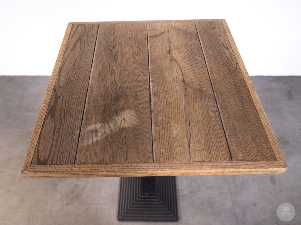 De combinatie van hout en metaal geeft deze tafel een industriële en sfeervolle uitstraling, passend in diverse horecaconcepten. Het betreft gebruikt horeca meubilair, waardoor lichte gebruikerssporen aanwezig kunnen zijn.