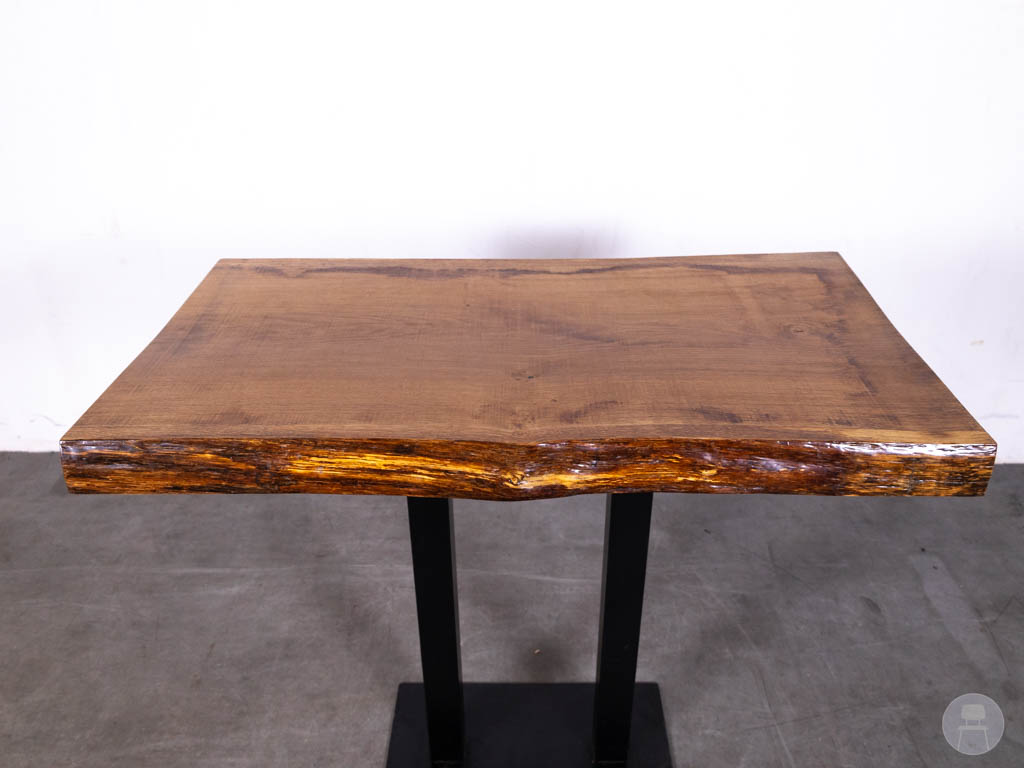 Statafel Henry Boomstam 133x74cm is een absolute blikvanger voor elke horecagelegenheid die sfeer en karakter wil uitstralen. Het massieve houten blad in natuurlijke boomstamvorm is afgewerkt met een glanzende laklaag, die niet alleen het hout prachtig tot zijn recht laat komen, maar het ook beschermt tegen intensief gebruik. Perfect voor cafés, restaurants of borrelruimtes waar een warme en unieke uitstraling belangrijk is.